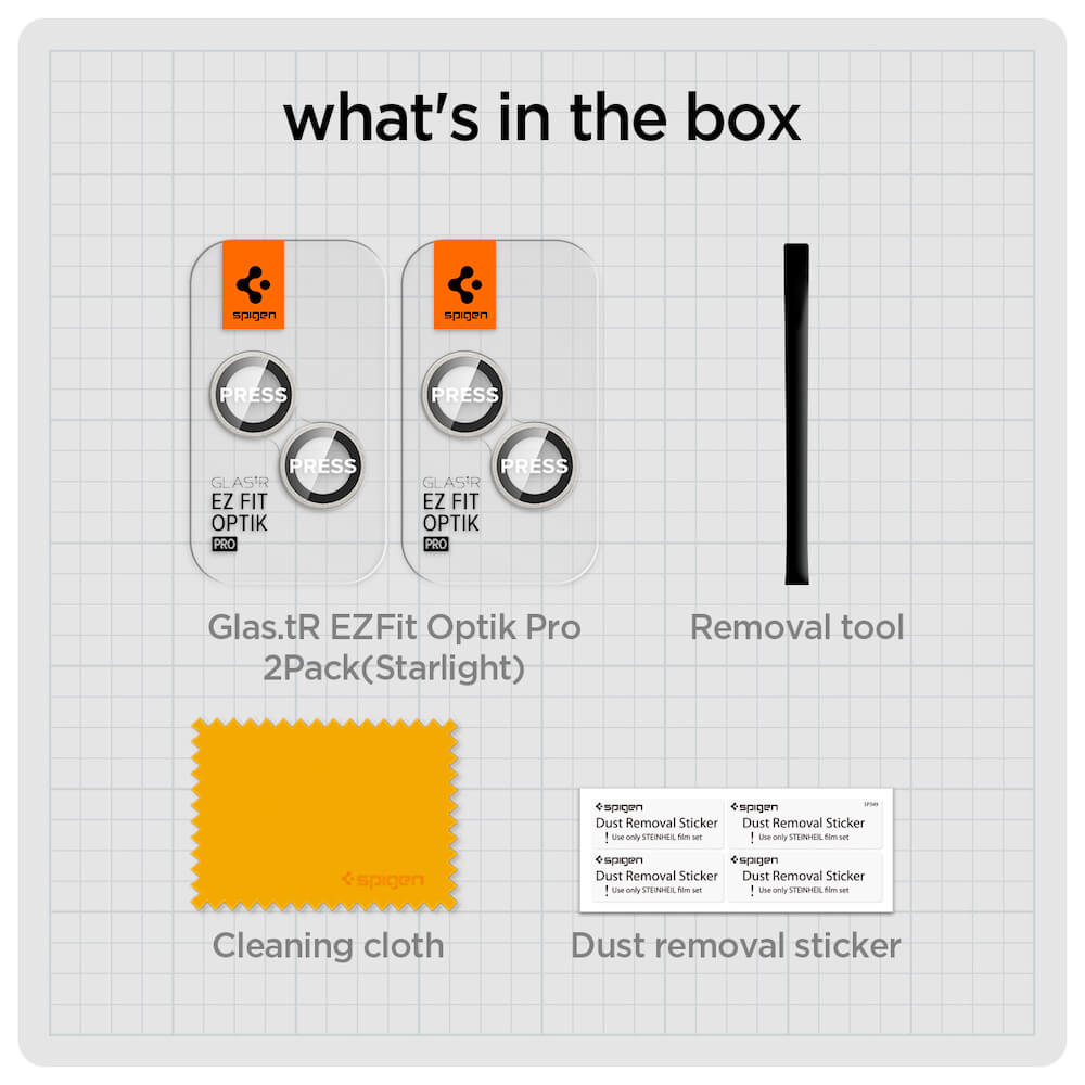 Spigen Optik Pro tR Ez Fit Lens Protector - 2 комплекта предпазни стъклени лещи за камерата на iPhone 14, iPhone 14 Plus (светлозлатист)