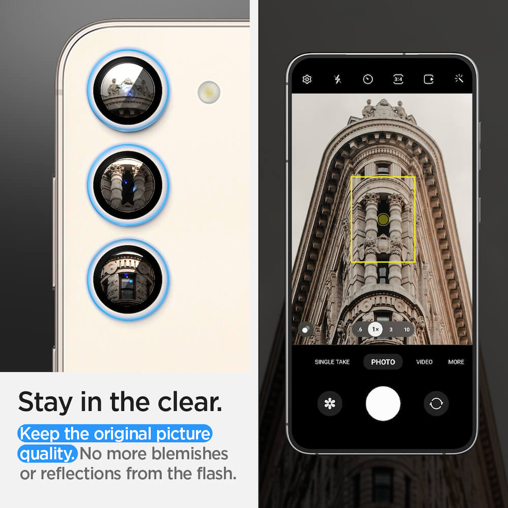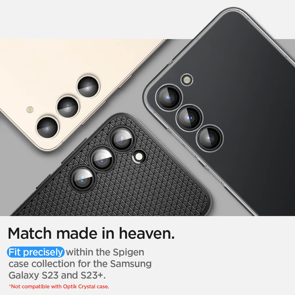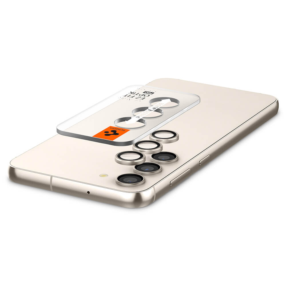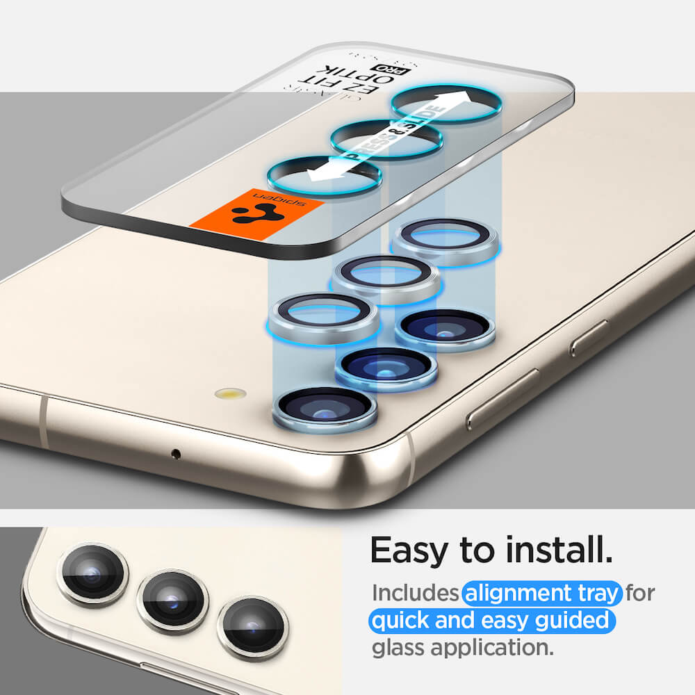 Spigen Optik Pro tR Ez Fit Lens Protector 2 Pack - 2 комплекта предпазни стъклени лещи за камерата на Samsung Galaxy S23, Galaxy S23 Plus (бежов)