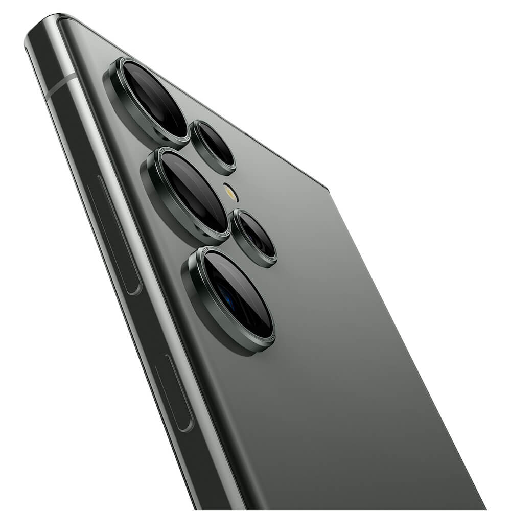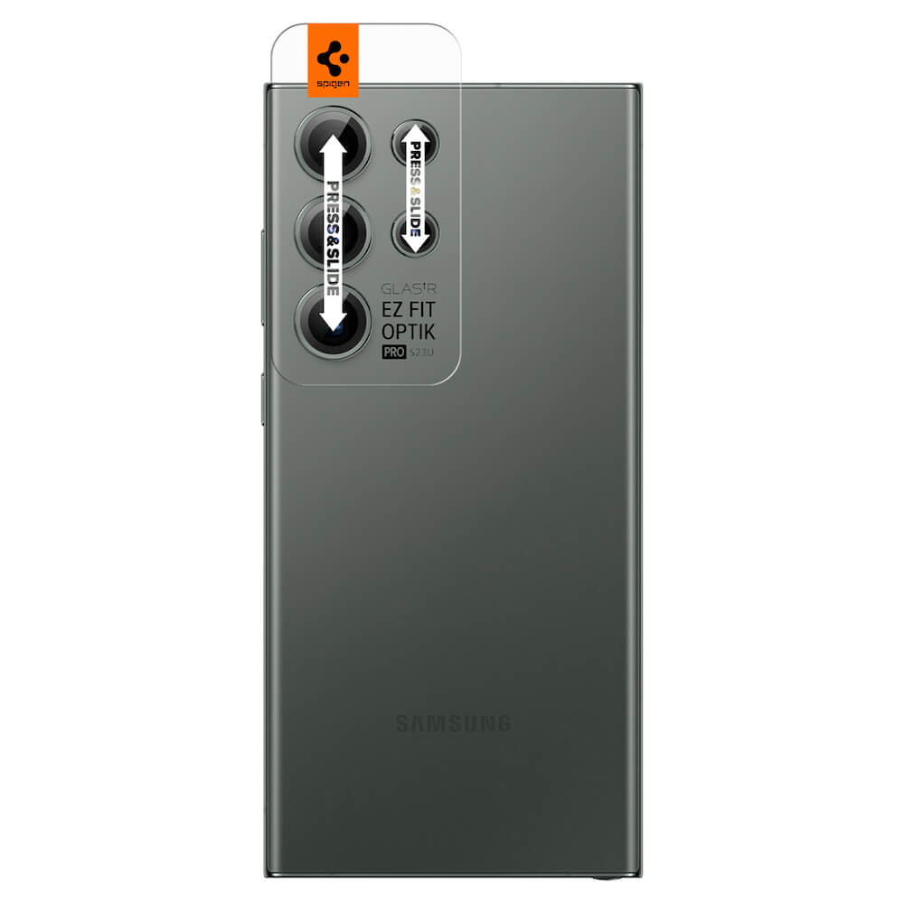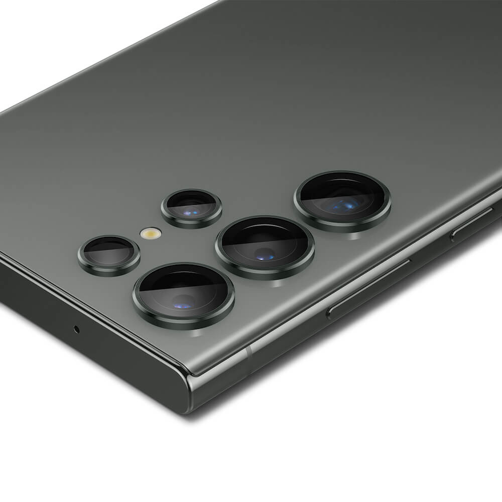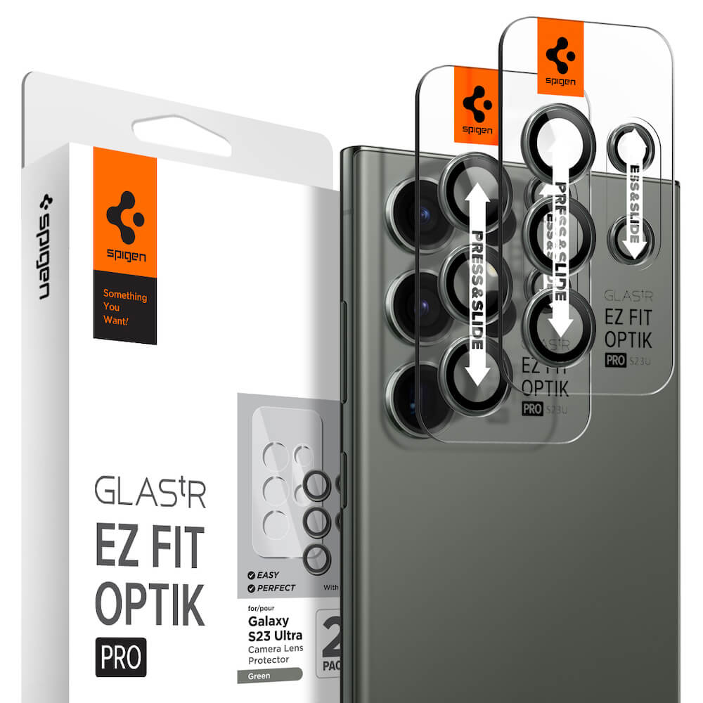 Spigen Optik Pro tR Ez Fit Lens Protector 2 Pack - 2 комплекта предпазни стъклени лещи за камерата на Samsung Galaxy S23 Ultra (тъмнозелен)