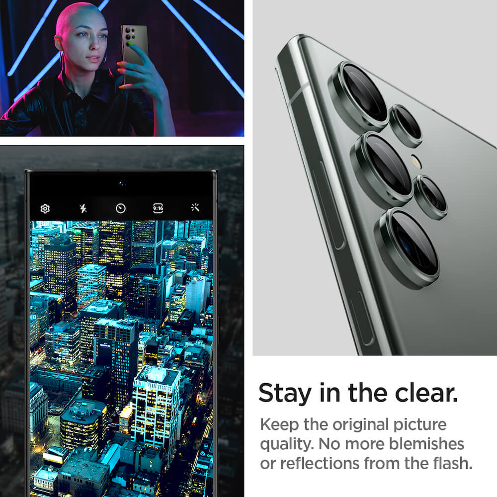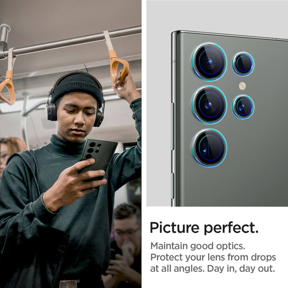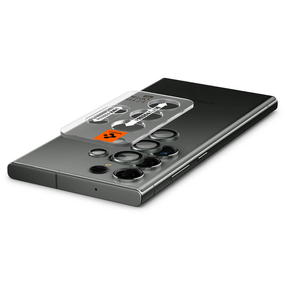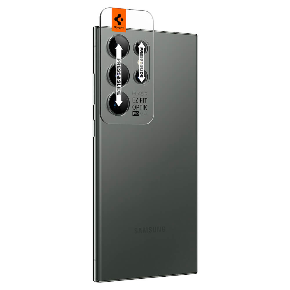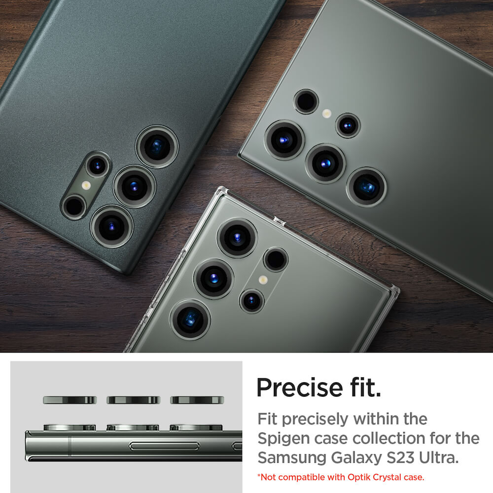 Spigen Optik Pro tR Ez Fit Lens Protector 2 Pack - 2 комплекта предпазни стъклени лещи за камерата на Samsung Galaxy S23 Ultra (тъмнозелен)