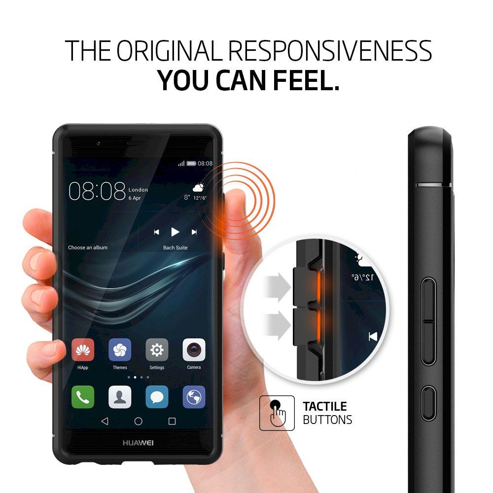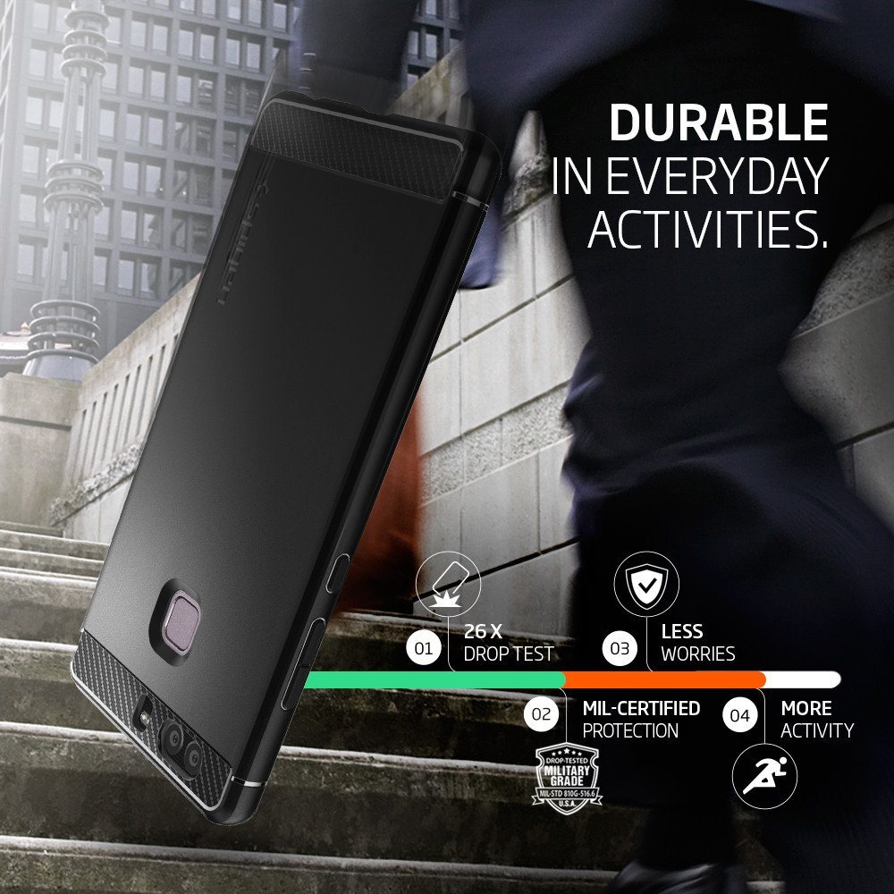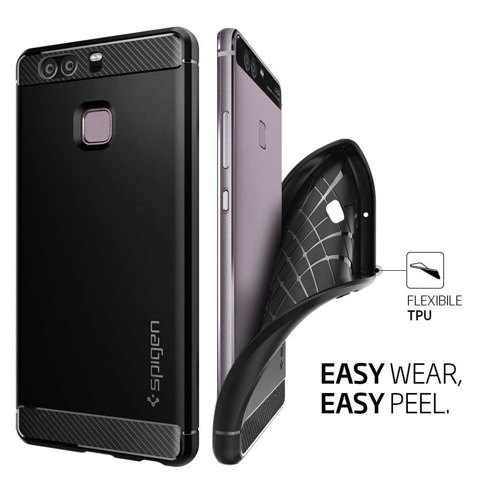 Spigen Rugged Armor Case - термополиуретанов кейс с най-висока степен на защита за Huawei P9 (черен)