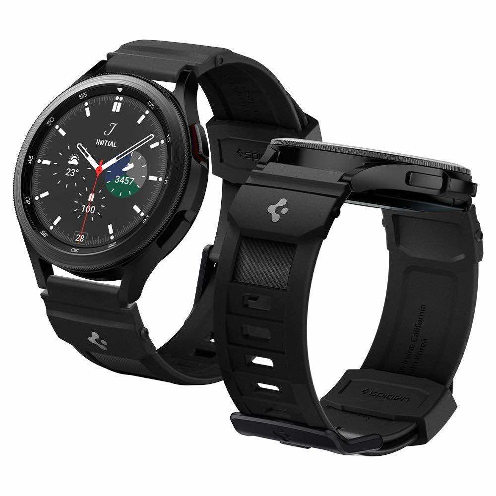 Spigen Rugged Band 20mm - хибридна каишка (полимер+карбон) за Galaxy Watch 4, Galaxy Watch Active 2, Huawei Watch GT 2 42mm и други (20мм) (черен)
