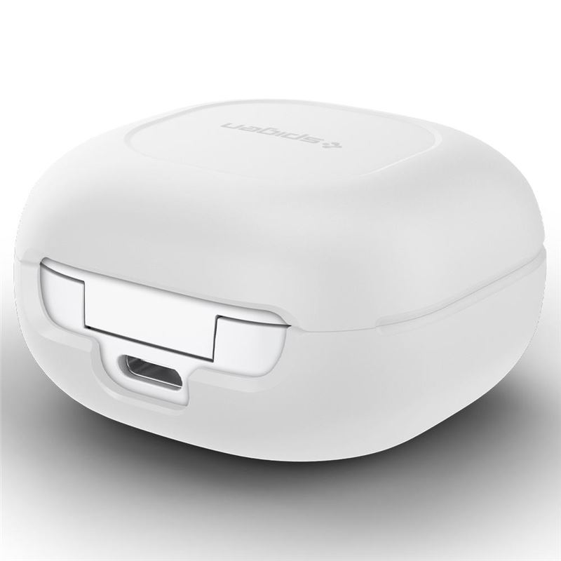 Spigen Silicone Fit Case - силиконов калъф с карабинер за Samsung Galaxy Buds Plus, Samsung Galaxy Buds (бял)