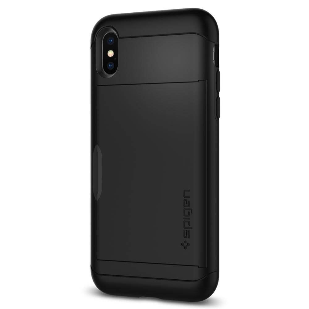 Spigen Slim Armor Case CS - хибриден кейс с отделение за кр. карти и най-висока степен на защита за iPhone XS, iPhone X (черен)