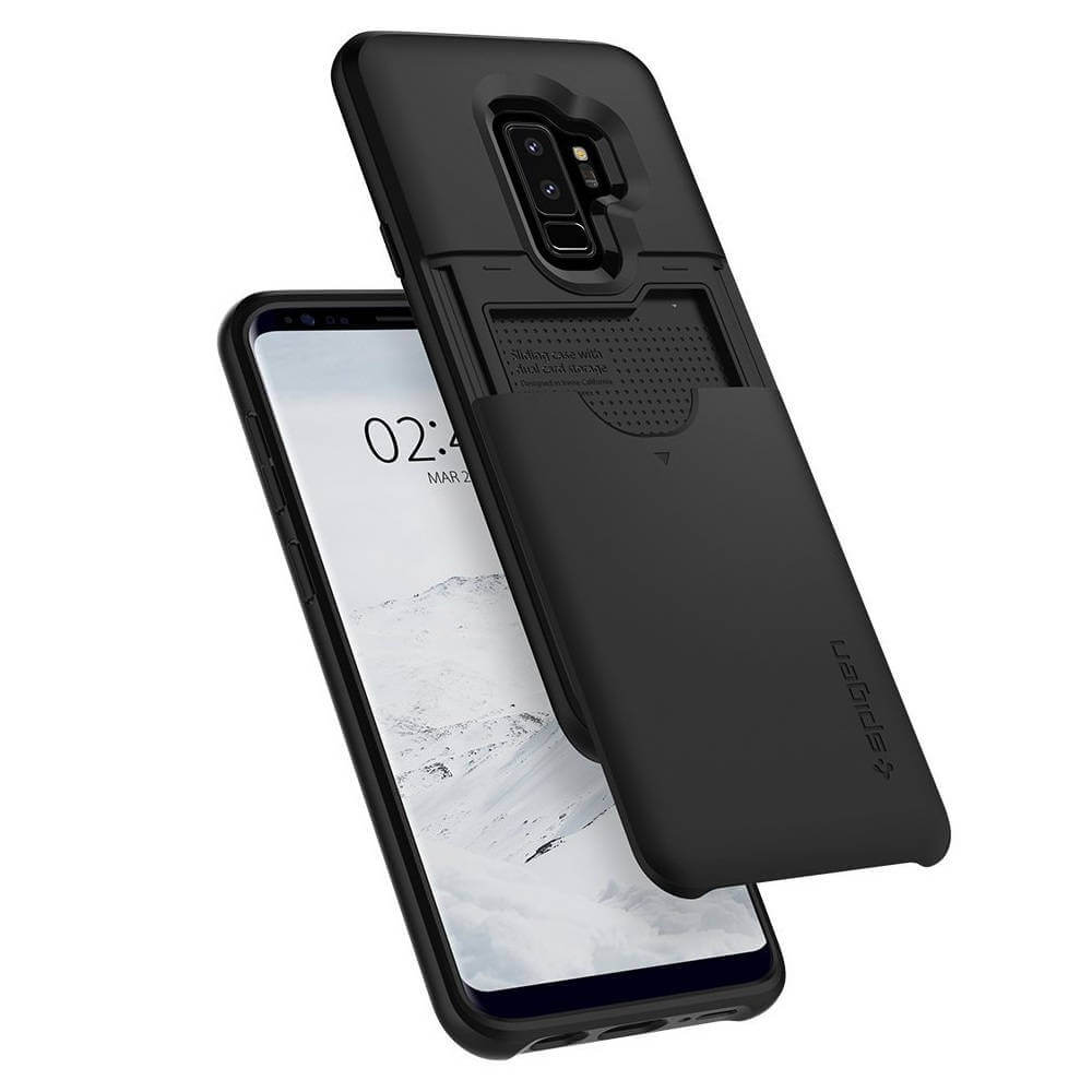 Spigen Slim Armor Case CS - хибриден кейс с отделение за кр. карти и най-висока степен на защита за Samsung Galaxy S9 Plus (черен)