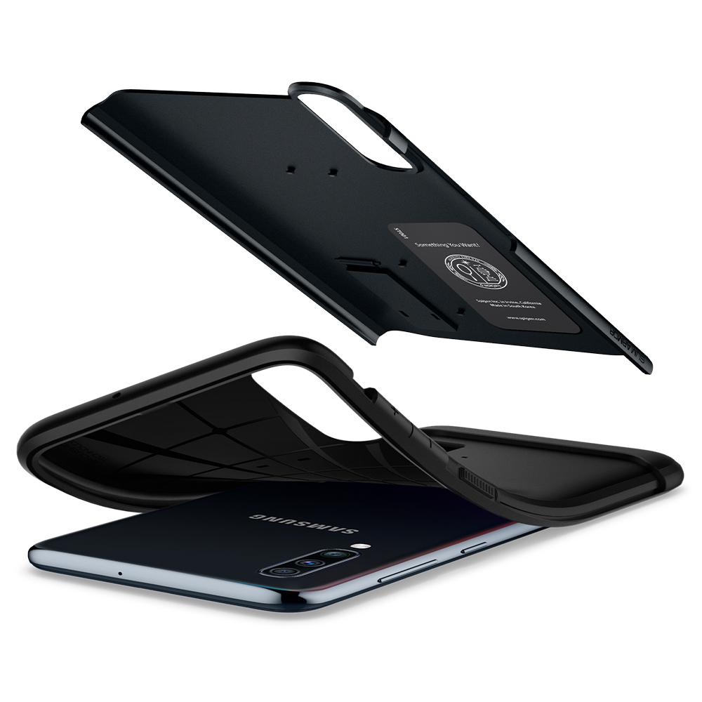 Spigen Slim Armor Case - хибриден кейс с най-висока степен на защита за Samsung Galaxy A70 (тъмносив)