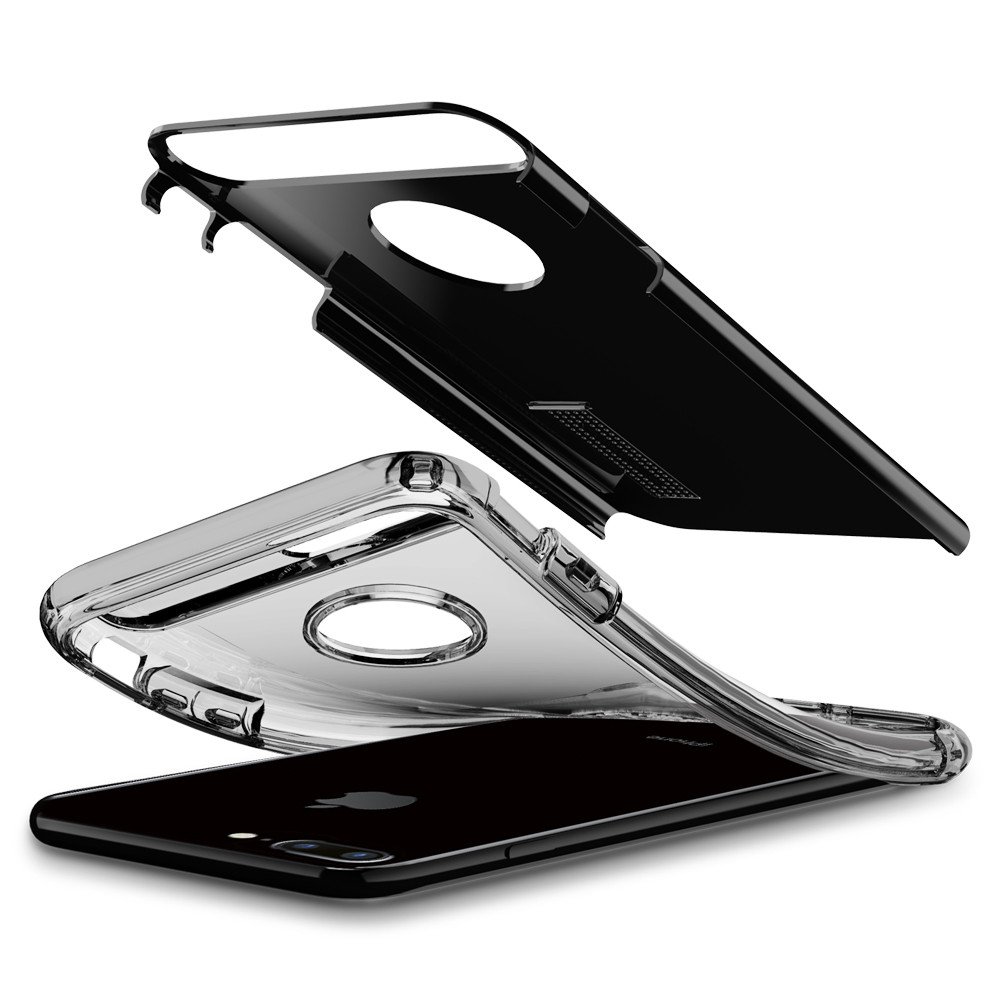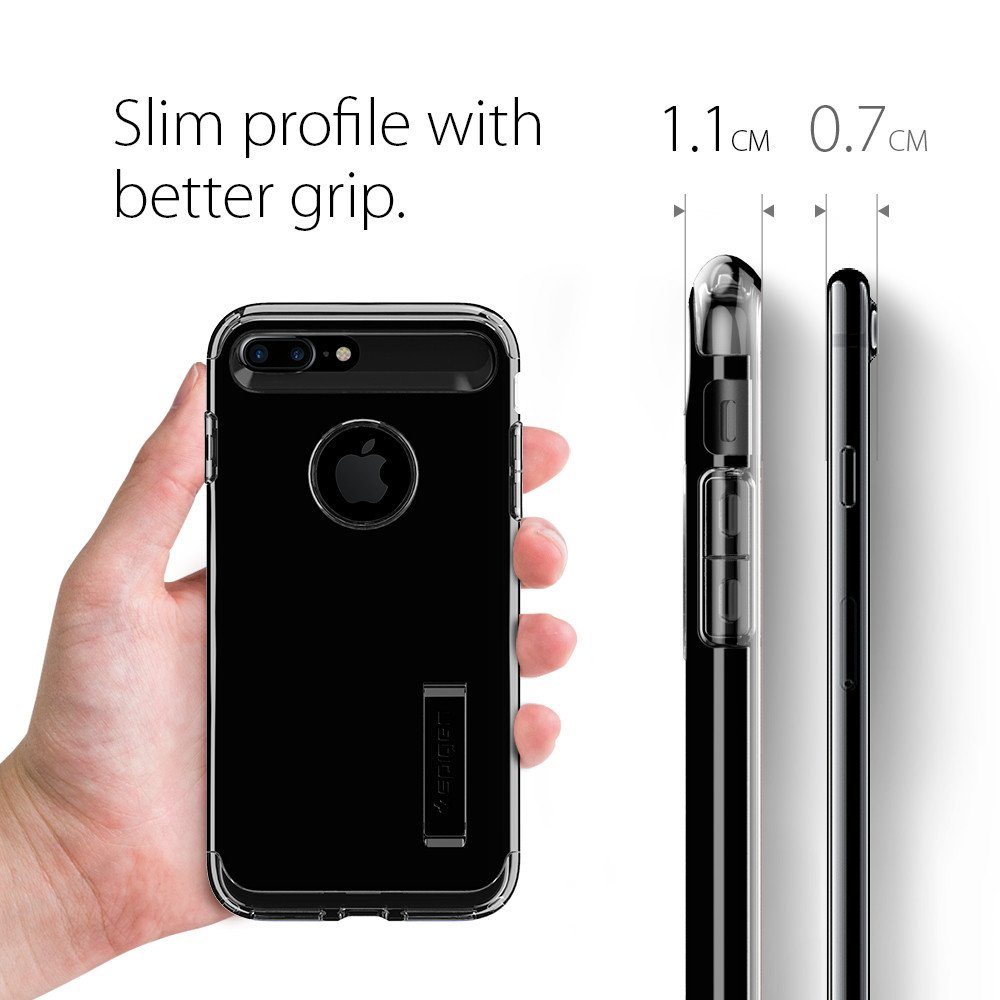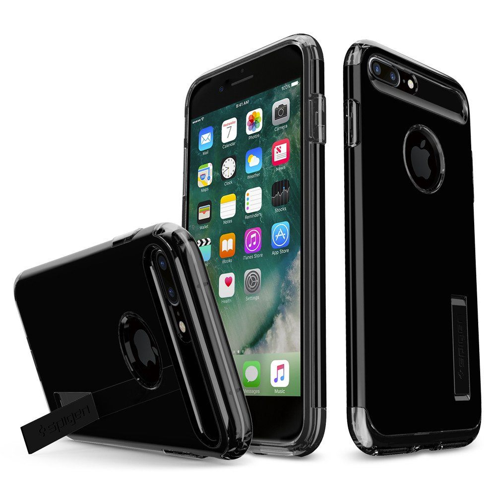 Spigen Slim Armor Case - хибриден кейс с поставка и най-висока степен на защита за iPhone 8 Plus, iPhone 7 Plus (черен гланц)