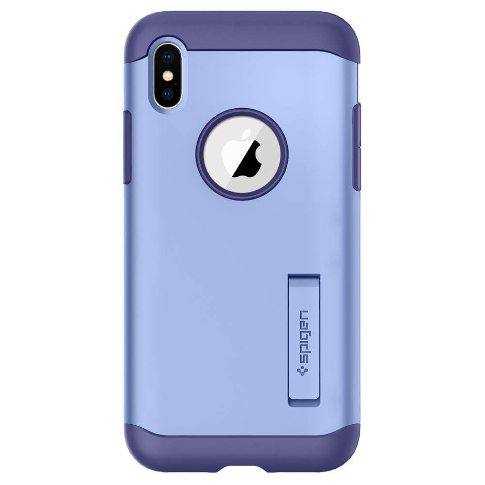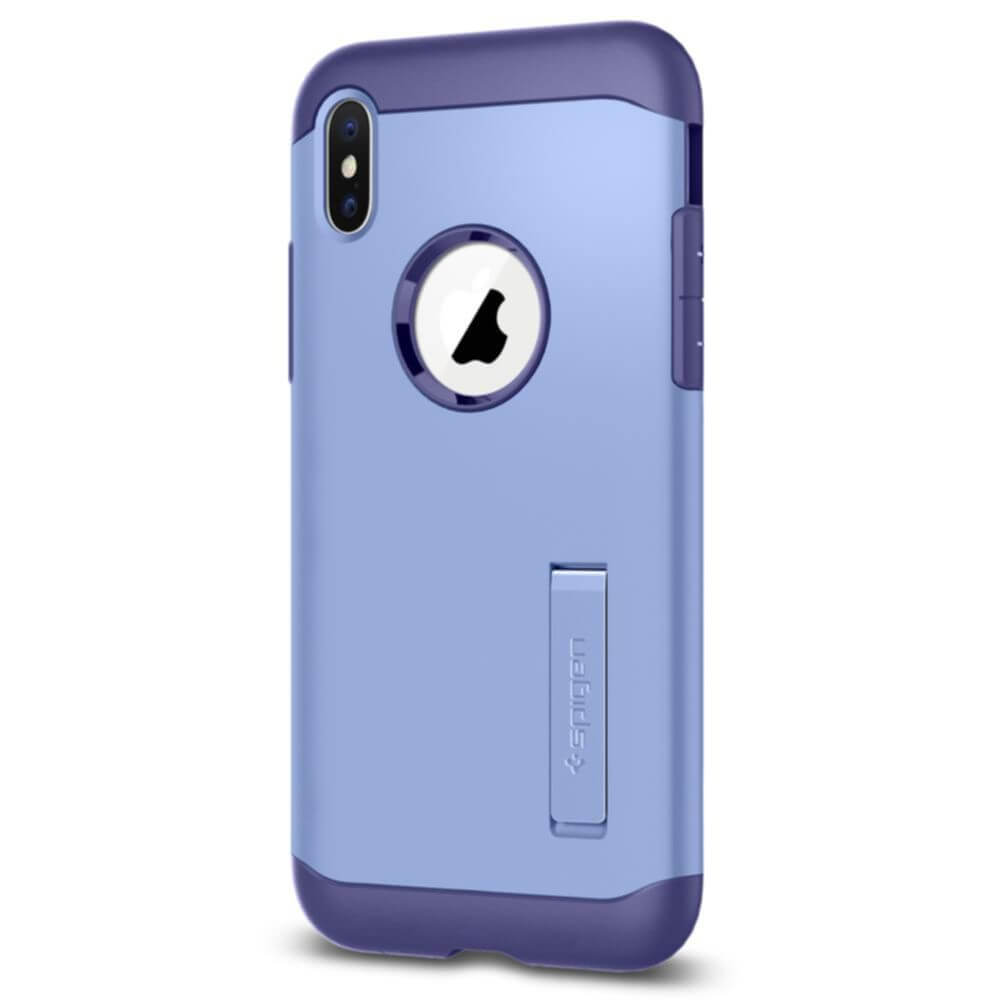 Spigen Slim Armor Case - хибриден кейс с поставка и най-висока степен на защита за iPhone XS, iPhone X (лилав)