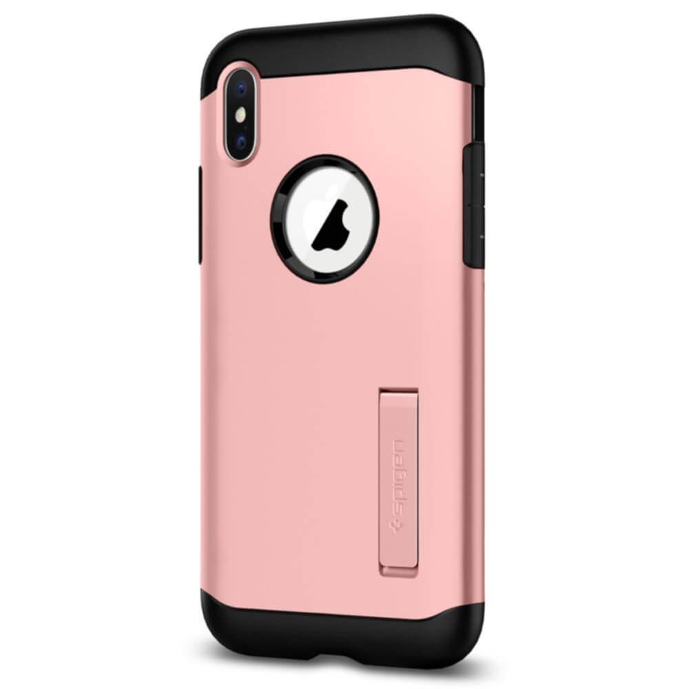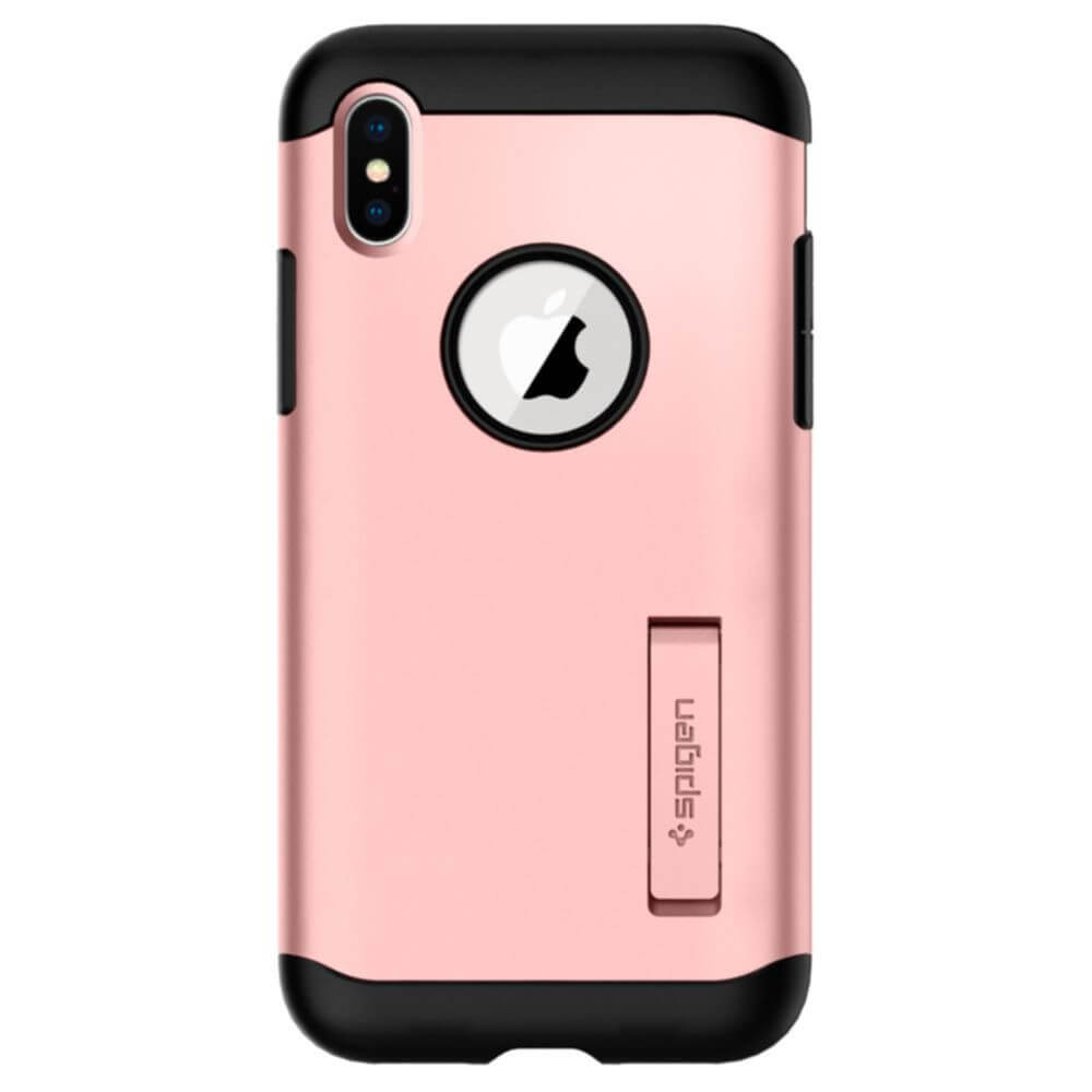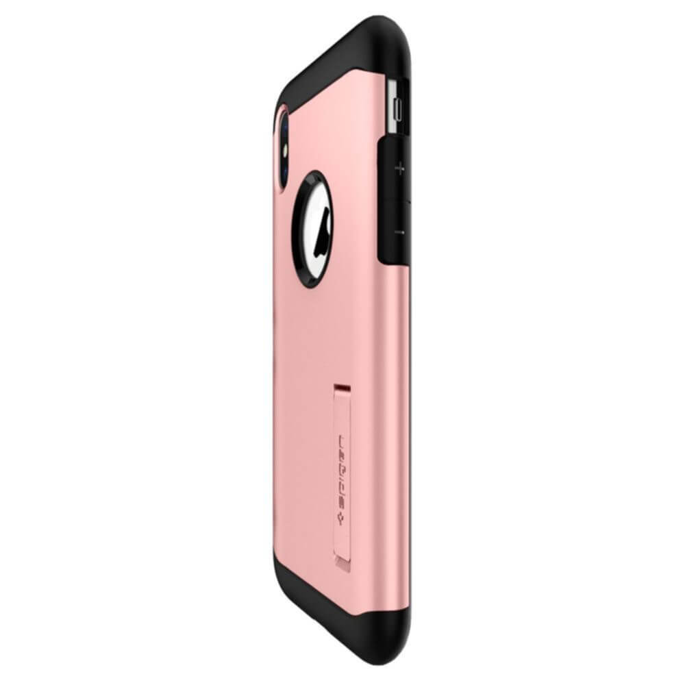 Spigen Slim Armor Case - хибриден кейс с поставка и най-висока степен на защита за iPhone XS, iPhone X (розово злато)