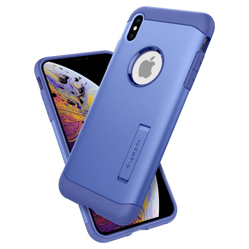 Spigen Slim Armor Case - хибриден кейс с поставка и най-висока степен на защита за iPhone XS Max (лилав)
