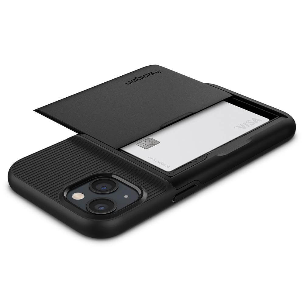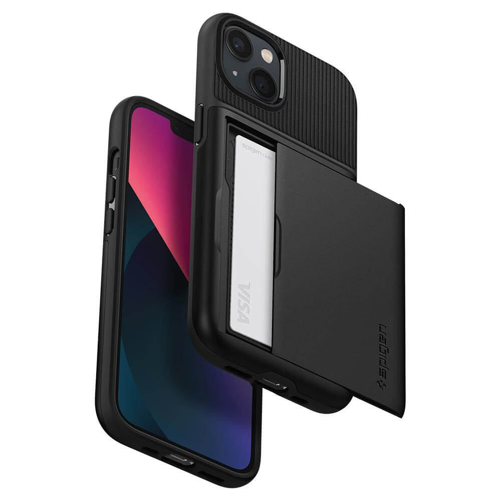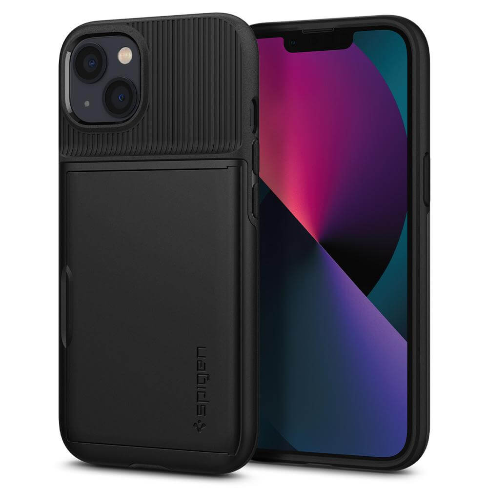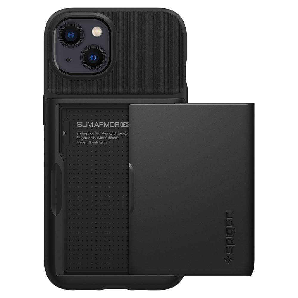 Spigen Slim Armor CS Case - хибриден кейс с отделение за кр. карти и най-висока степен на защита за iPhone 13 (черен)