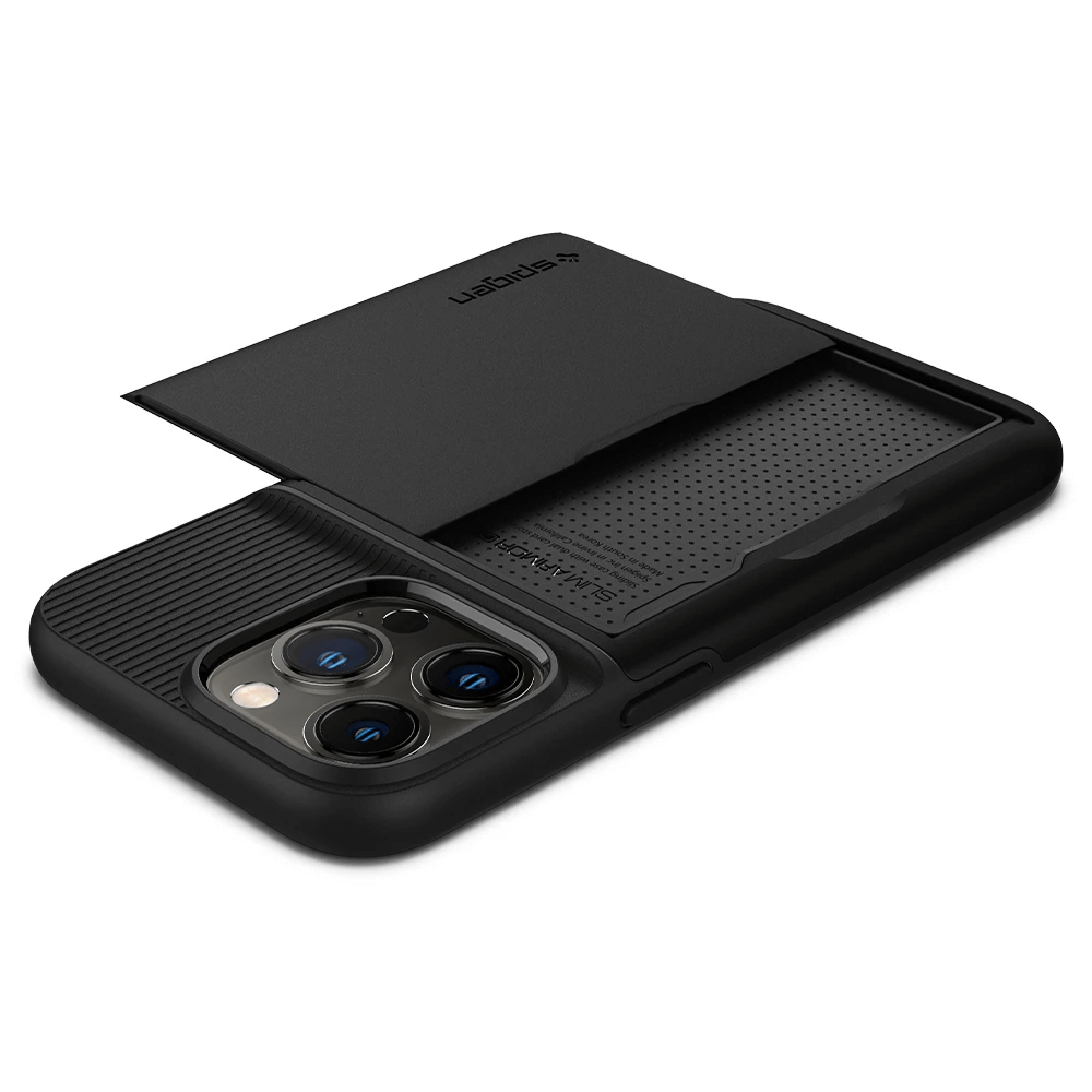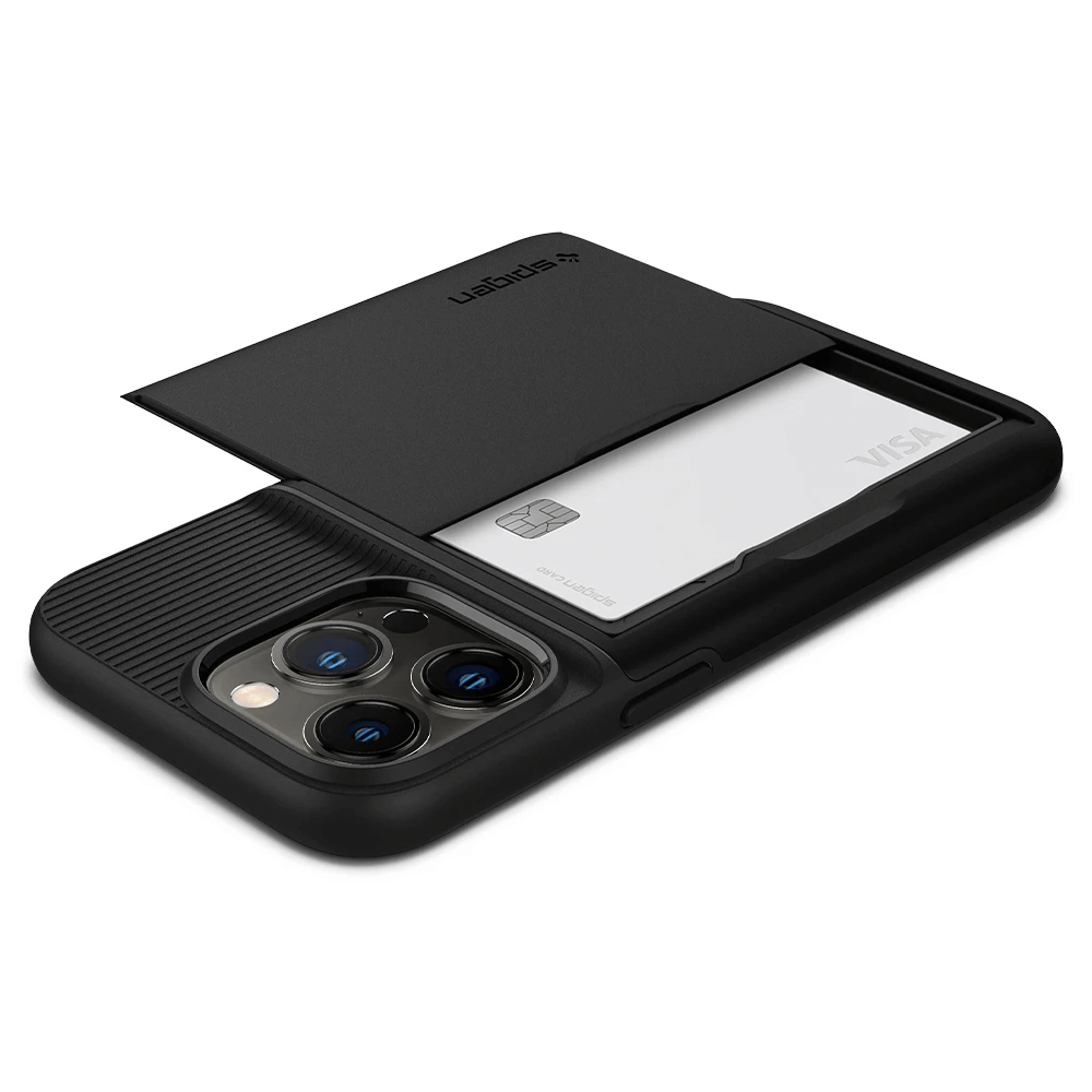 Spigen Slim Armor CS Case - хибриден кейс с отделение за кр. карти и най-висока степен на защита за iPhone 13 Pro Max (черен)