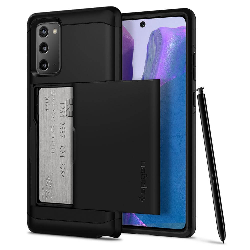 Spigen Slim Armor CS Case - хибриден кейс с отделение за кр. карти и най-висока степен на защита за Samsung Galaxy Note 20 (черен)