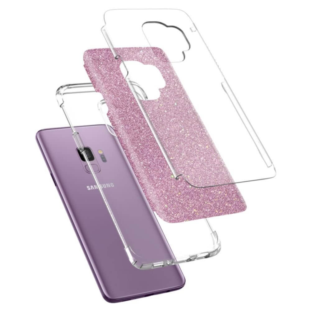 Spigen Slim Armor Glitter Case - хибриден кейс с най-висока степен на защита за Samsung Galaxy S9 (розов)