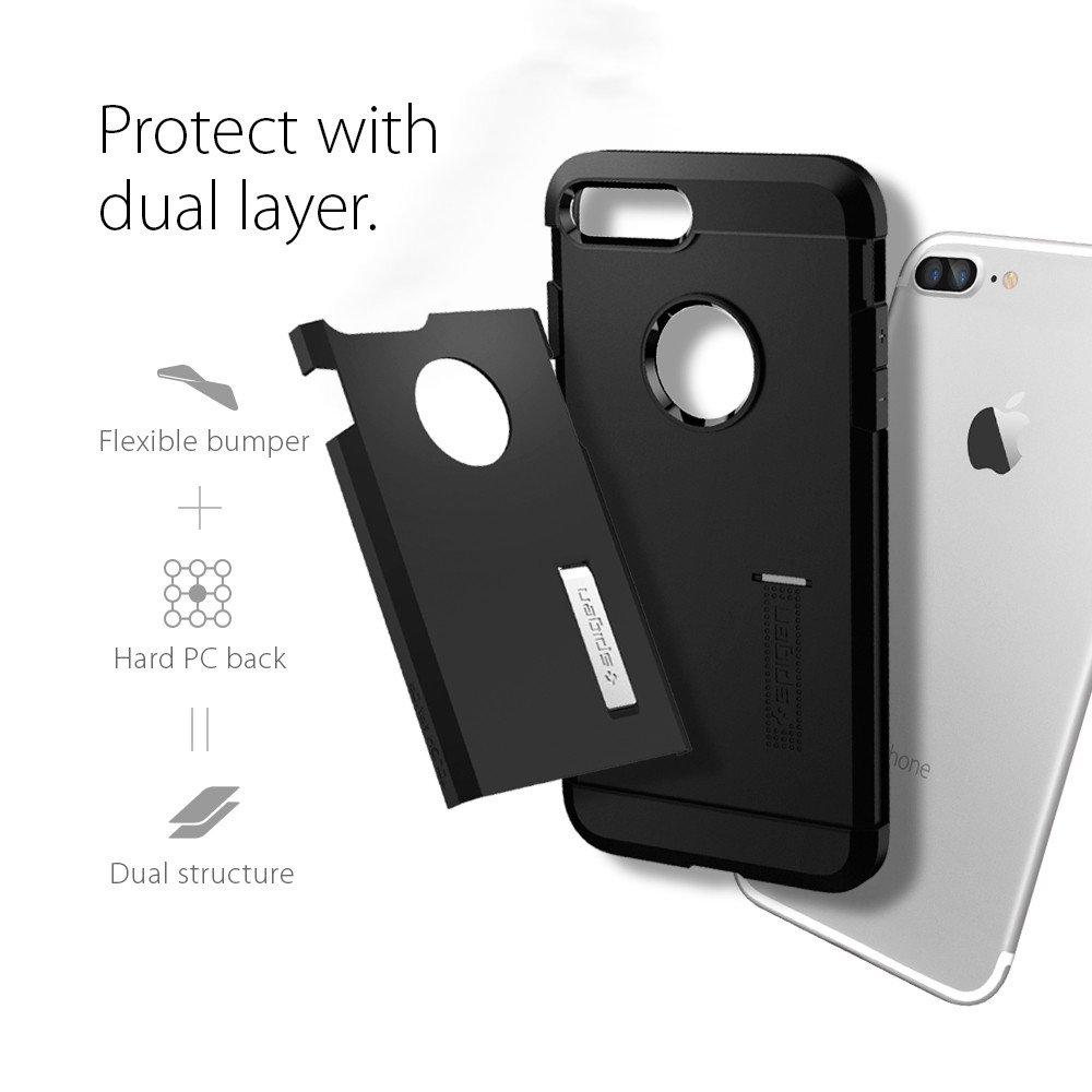 Spigen Tough Armor Case - хибриден кейс с най-висока степен на защита за iPhone 8 Plus, iPhone 7 Plus (черен)