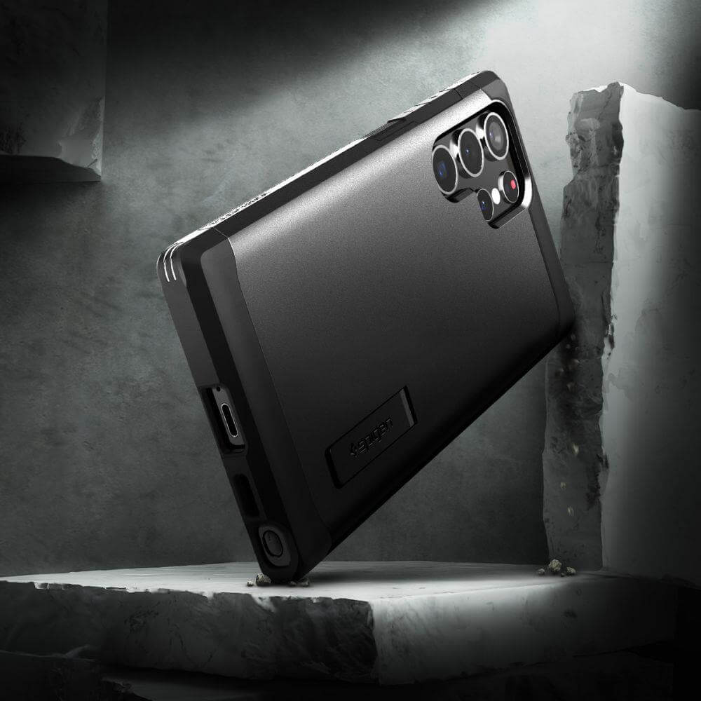 Spigen Tough Armor Case - хибриден кейс с най-висока степен на защита за Samsung Galaxy S22 Ultra (черен)