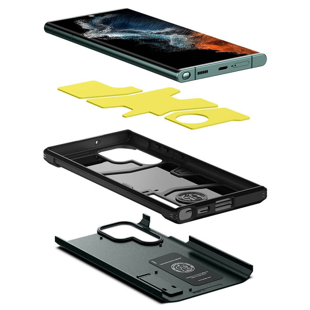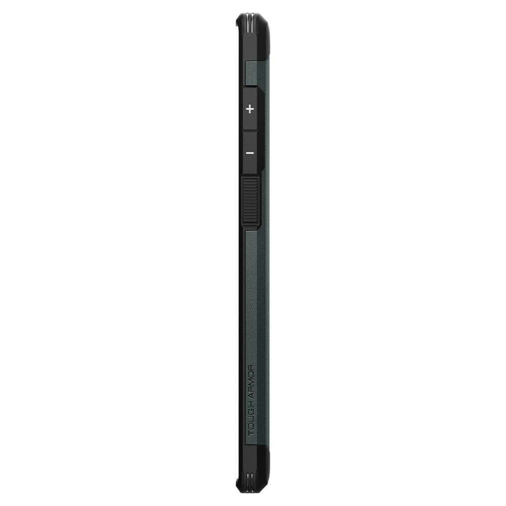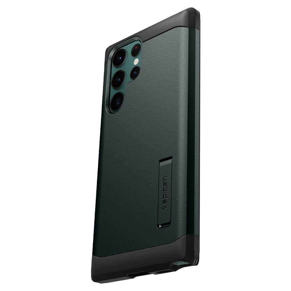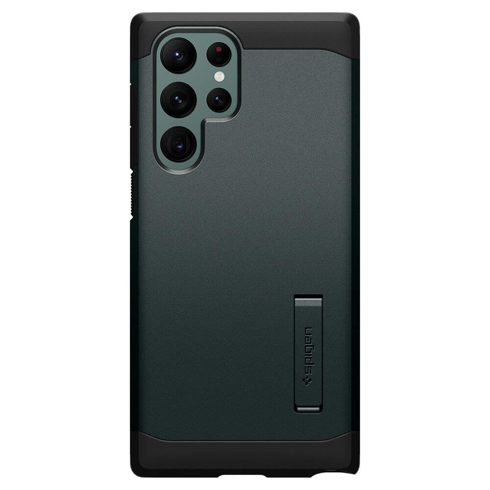 Spigen Tough Armor Case - хибриден кейс с най-висока степен на защита за Samsung Galaxy S22 Ultra (тъмнозелен)