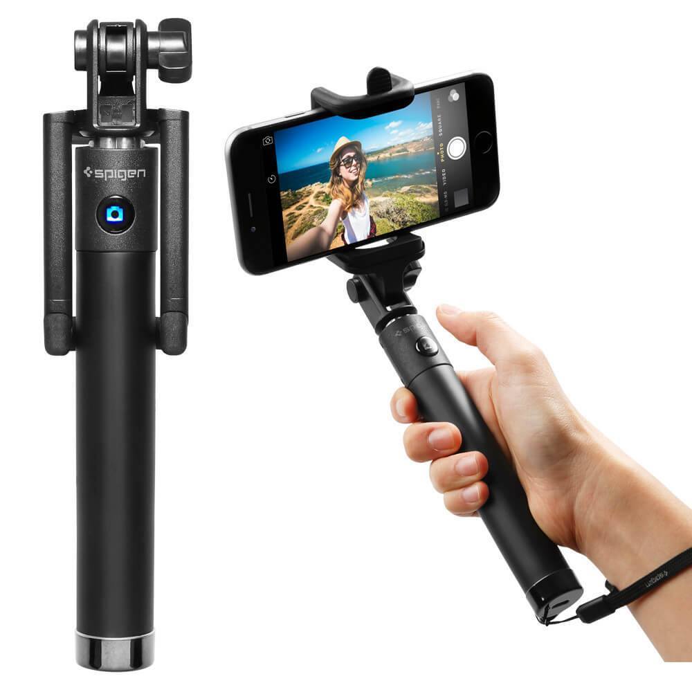 Spigen Ultra Compact Foldable Selfiestick - разтегателен безжичен селфи стик за мобилни телефони (черен)