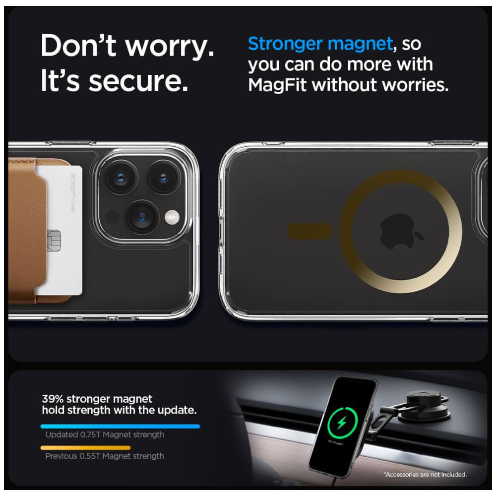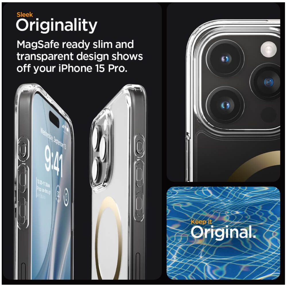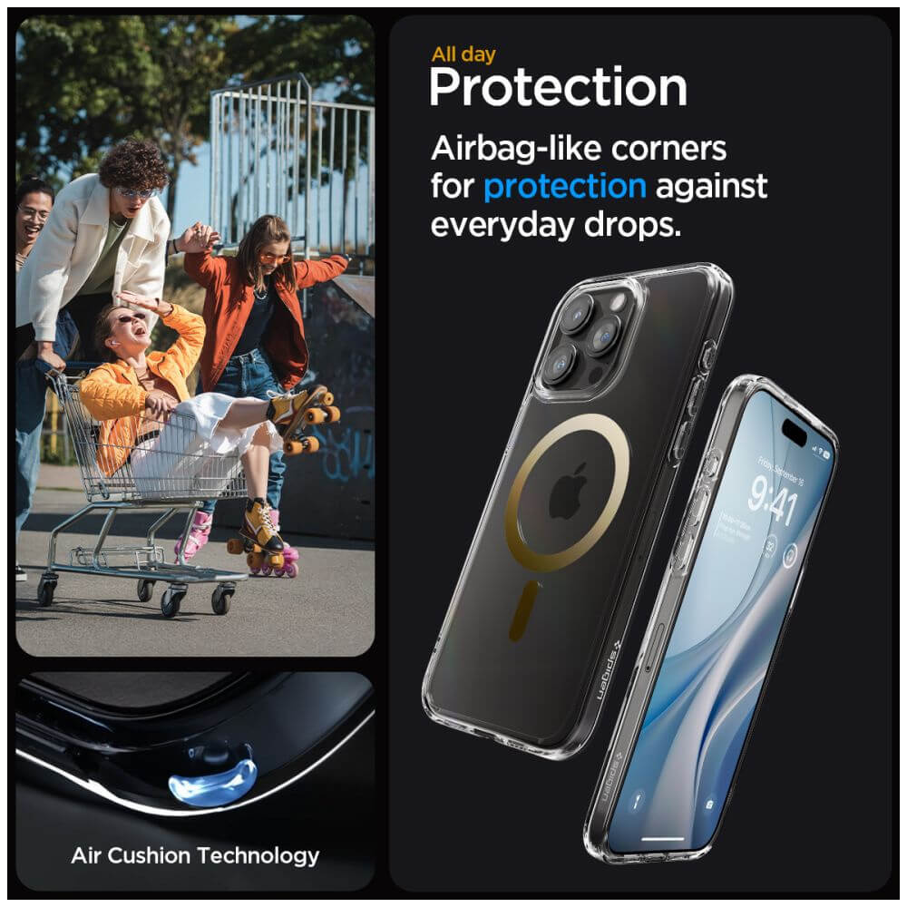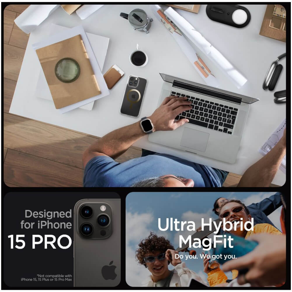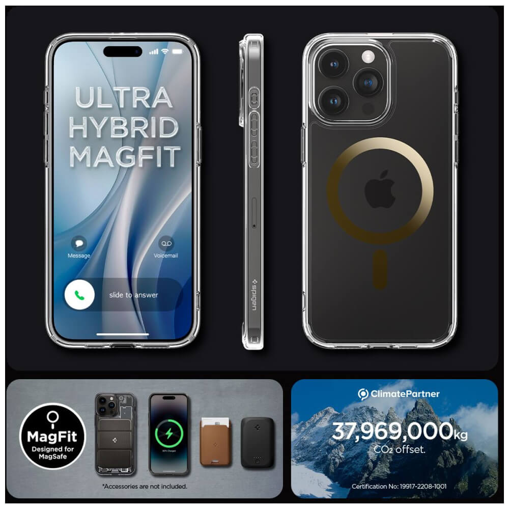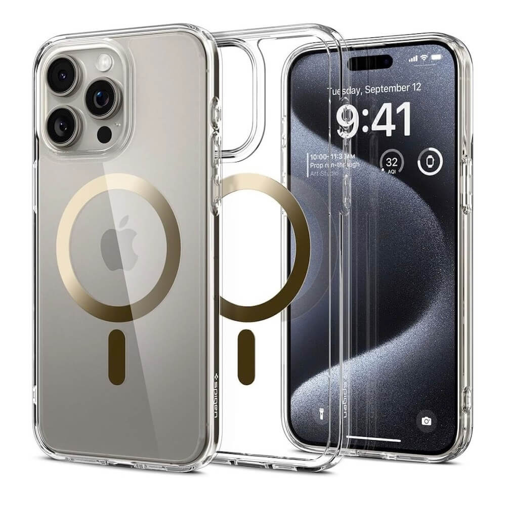 Spigen Ultra Hybrid MagSafe Case - хибриден кейс с висока степен на защита с MagSafe за iPhone 15 Pro (прозрачен-златист)