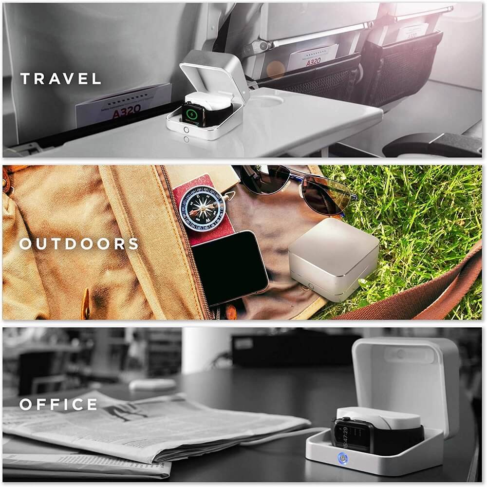 - Без кабели по бюрото или нощното ви шкафче! Вградената батерия на WatchBox може всяка вечер да зарежда вашия Apple Watch и да издържи близо 2 седмици. И то само с едно зареждане