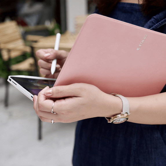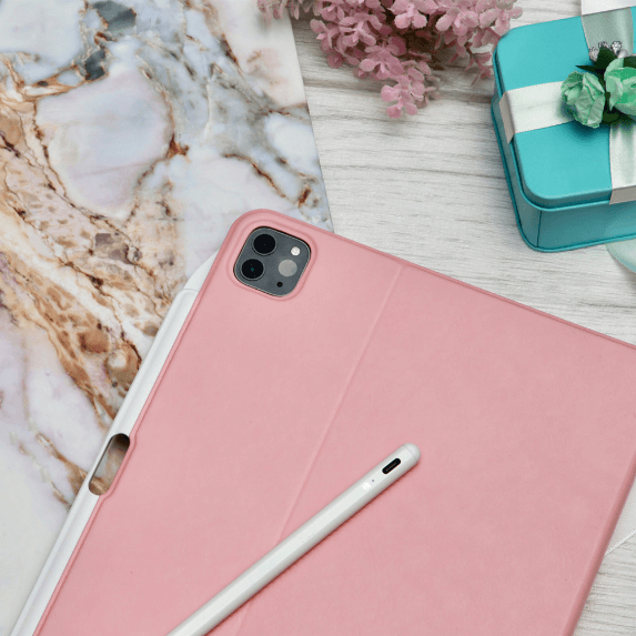 SwitchEasy CoverBuddy Folio Lite - кожен кейс с поставка и отделение за Apple Pencil 2 за iPad Pro 11 (2020) (розов)