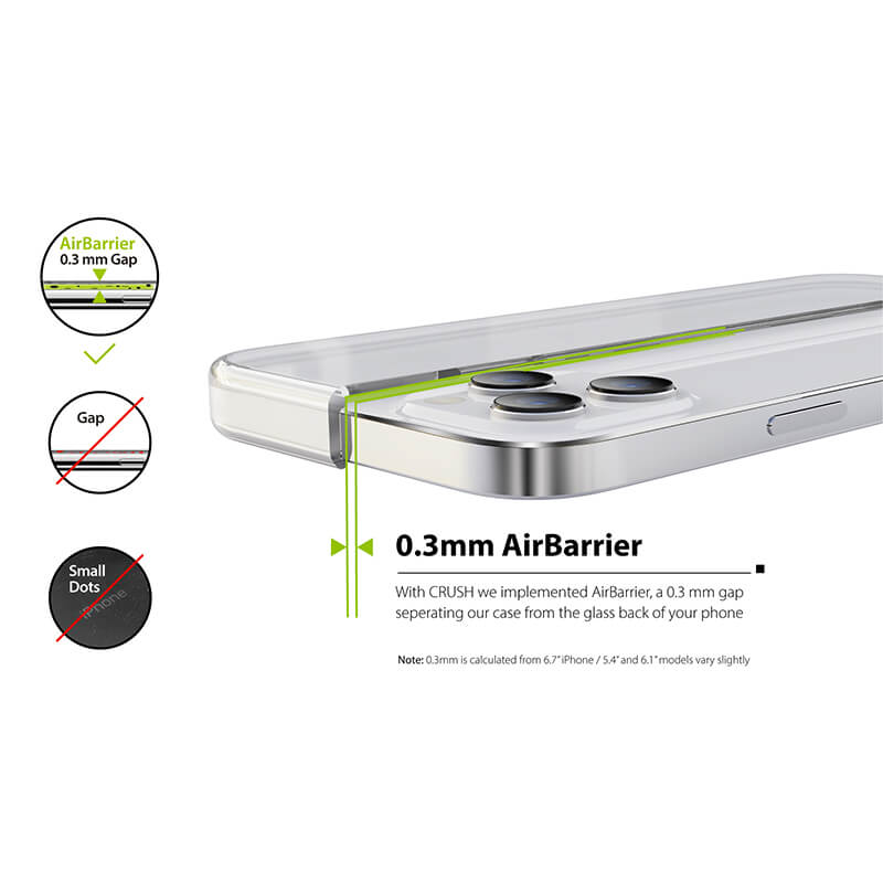 - Кейсът е изработен така, че да образува въздушна възглавница с дебелина 0.3 мм между него и гърба на вашия телефон