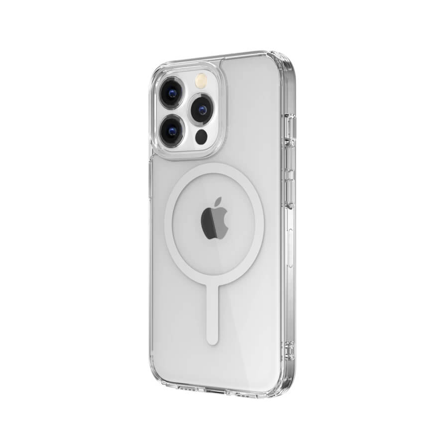 - Кейсът е снабден с магнит, благодарение на който е съвместим с MagSafe аксесоари. Това е изцяло нов стандарт за бързо и лесно свързване на аксесоари и безжични зарядни устройства