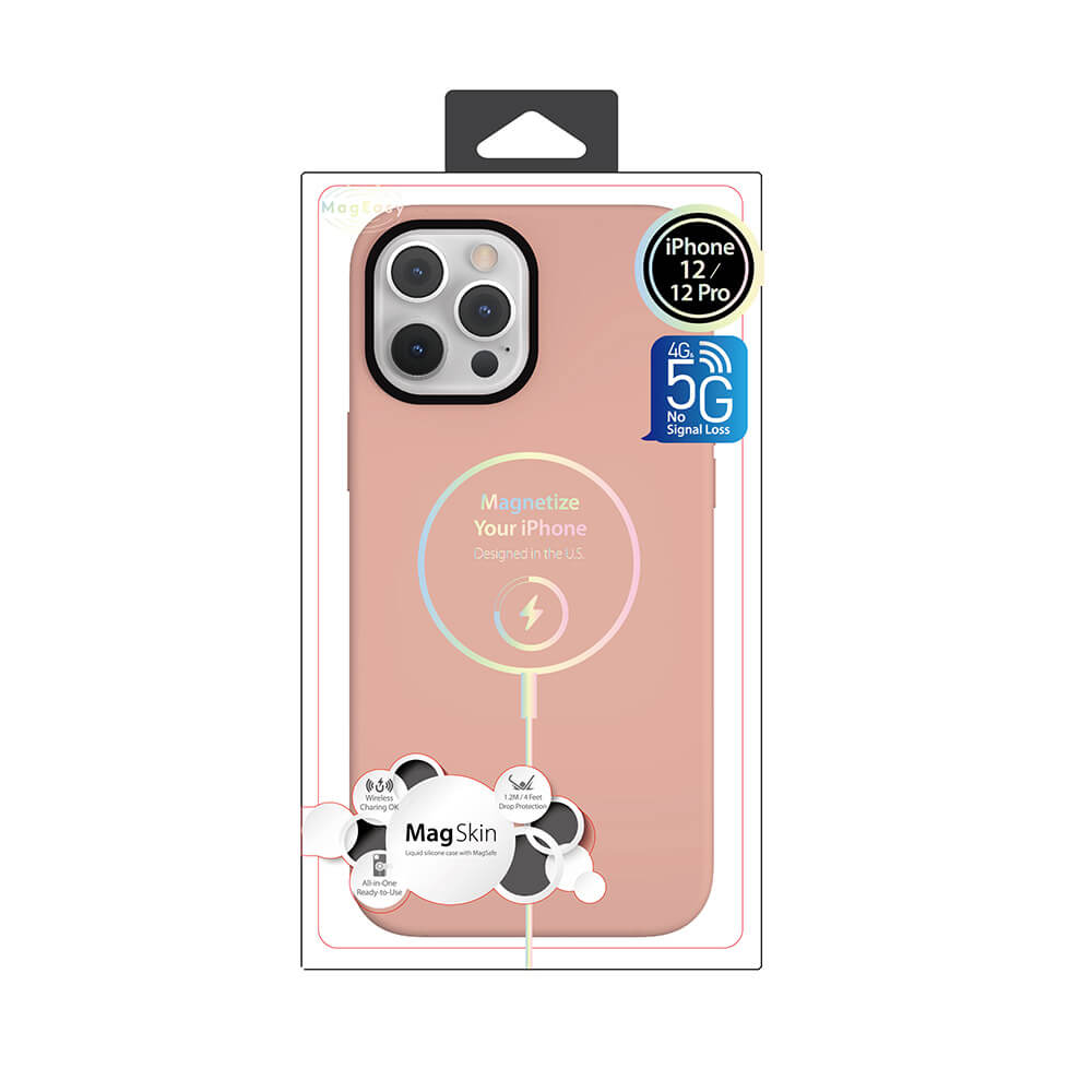 SwitchEasy MagSkin Case - тънък силиконов кейс с вграден магнитен конектор (MagSafe) за iPhone 12, iPhone 12 Pro (розов)