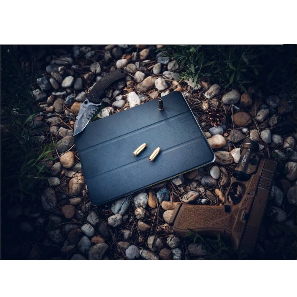 Tactical Book Tri Fold Case - калъф от изкуствена кожа и поставка за iPad 8 (2020), iPad 7 (2019) (син)