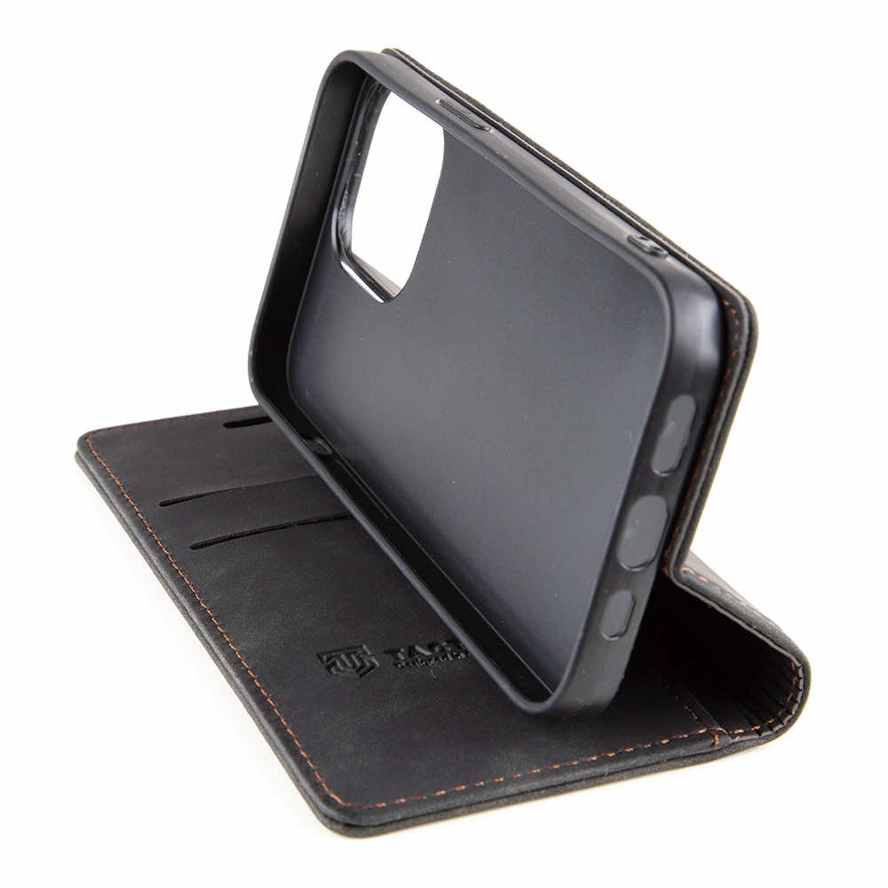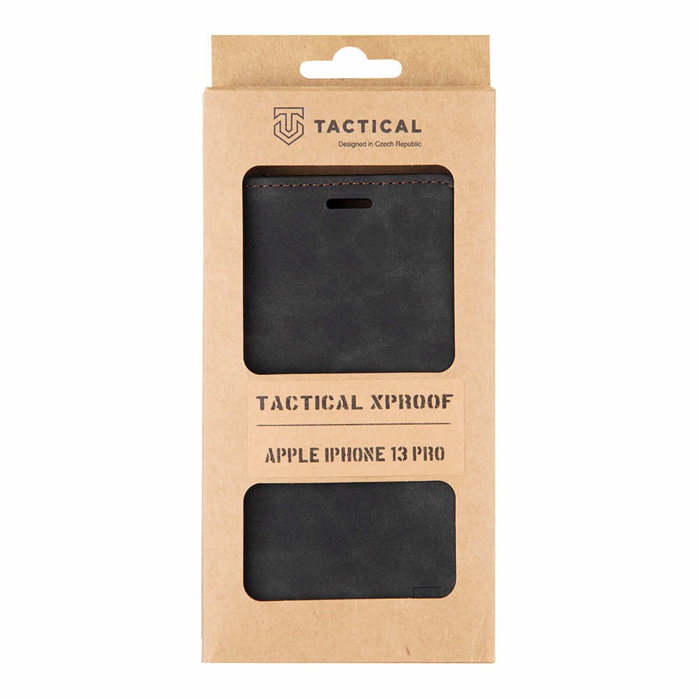 Tactical Xproof Flip Case - кожен калъф с поставка и отделение за кр. карти за iPhone 13 Pro (черен)