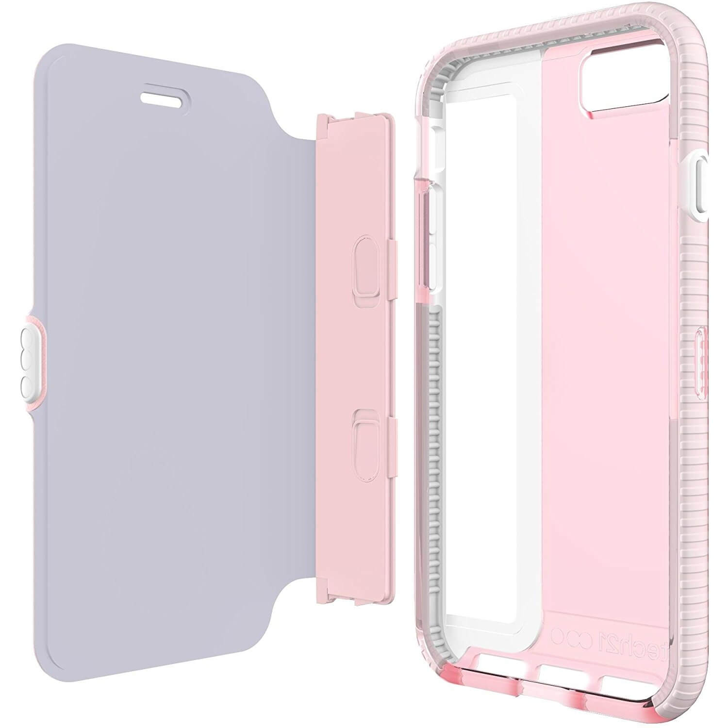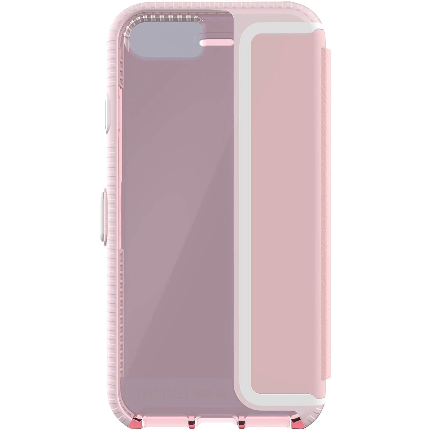 Tech21 Evo Wallet Case - кожен флип калъф с отделящ се силиконов кейс с висока защита за iPhone 8, iPhone 7 (розов)