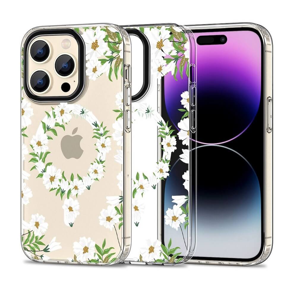 Tech-Protect MagMood White Daisy Hybrid MagSafe Case - хибриден удароустойчив кейс с MagSafe за iPhone 15 Pro (цветни мотиви)