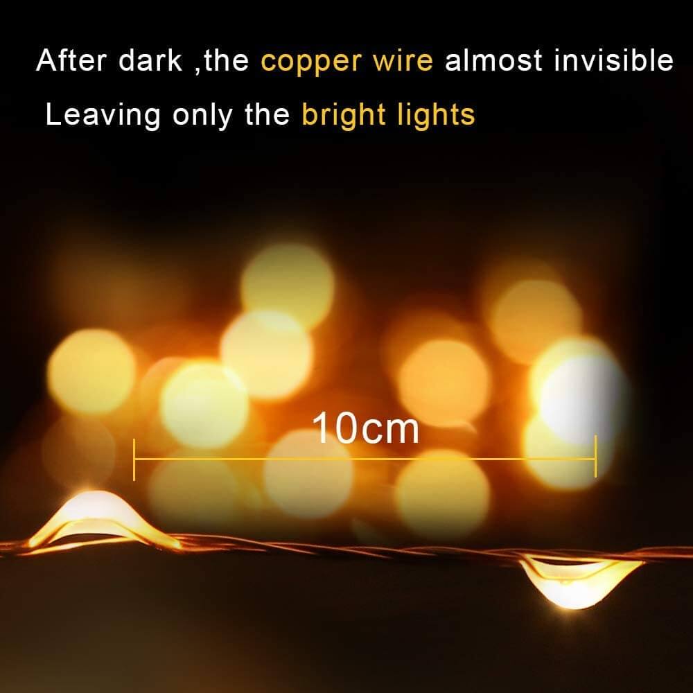 - 50 броя мини LED светлини, достатъчно ярки, за да осветят всеки тъмен ъгъл или да създадат романтична обстановка