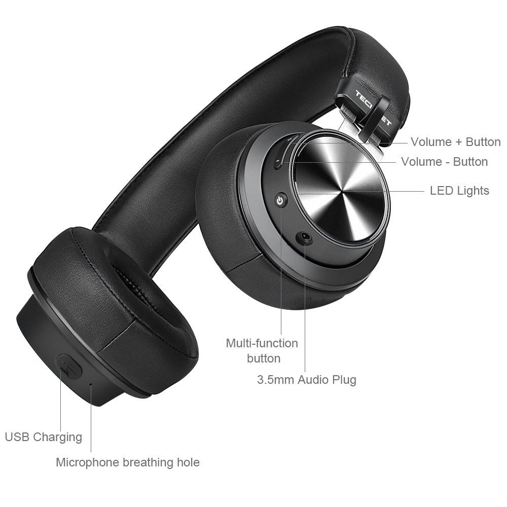 TeckNet BH10922 Bluetooth Headphones - безжични блутут слушалки с микрофон за мобилни устройства (черен)