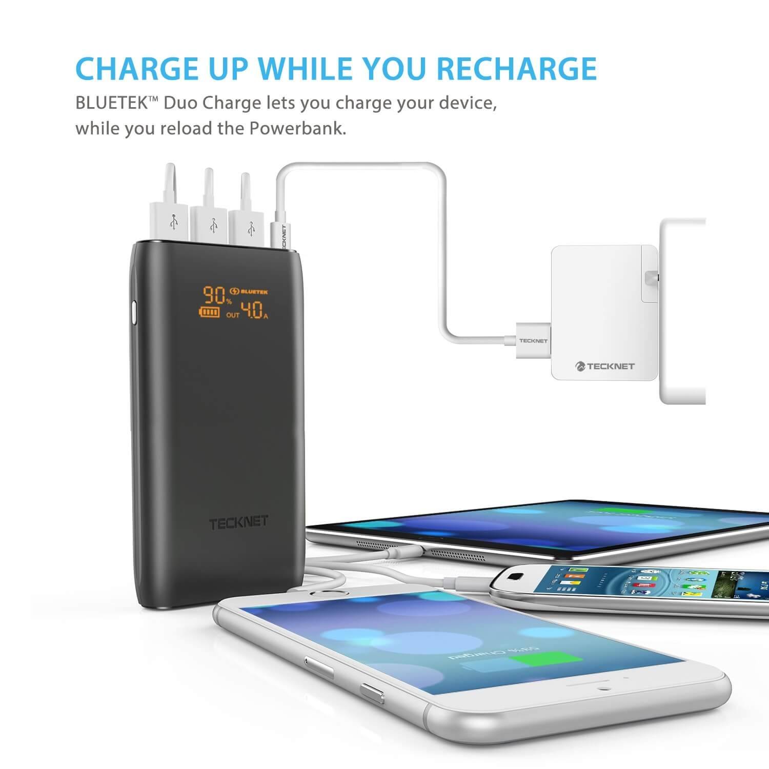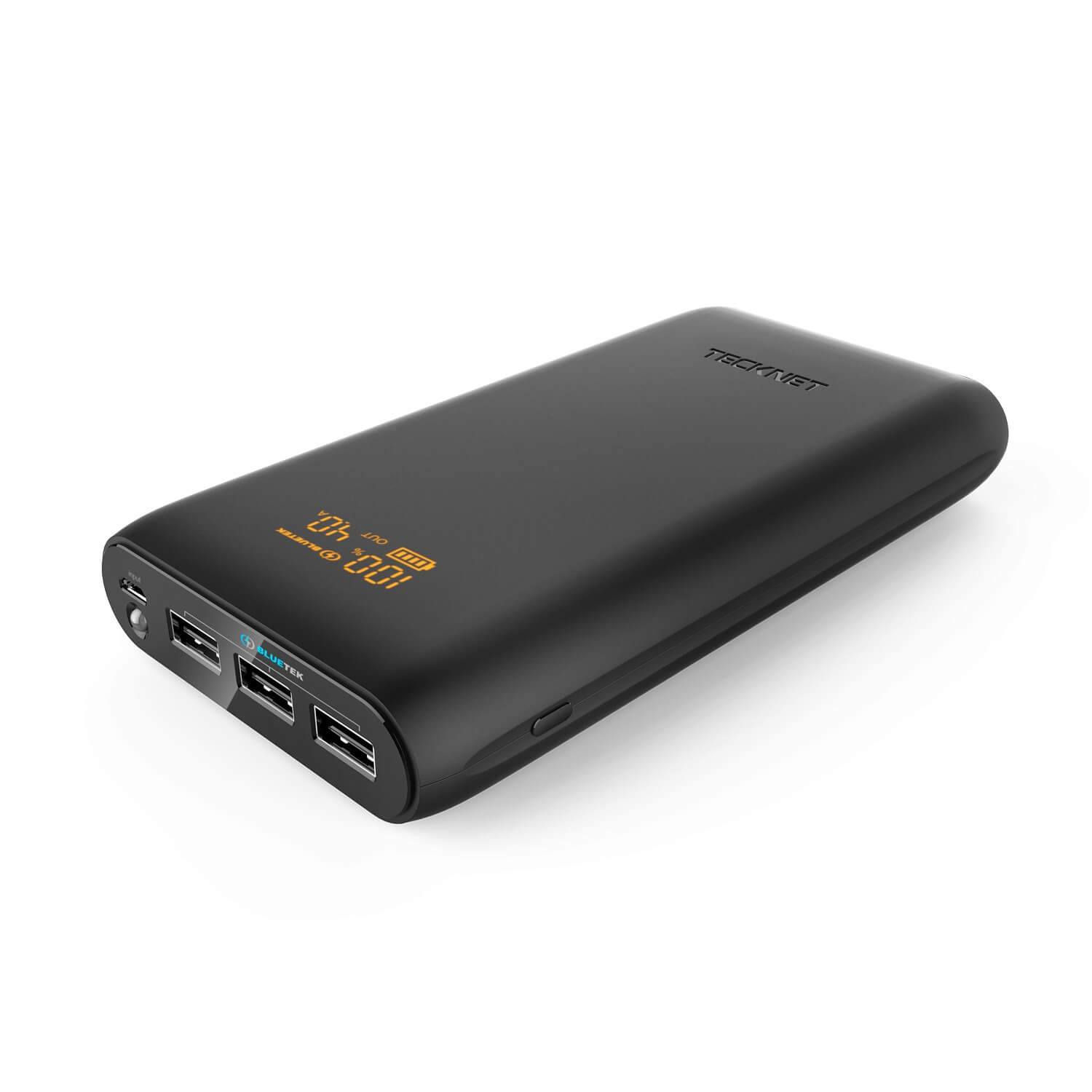 TeckNet BT1800 3-Port 19200mAh Power Bank - качествена външна батерия 19200mAh с 3xUSB и фенерче за смартфони и таблети (черен)
