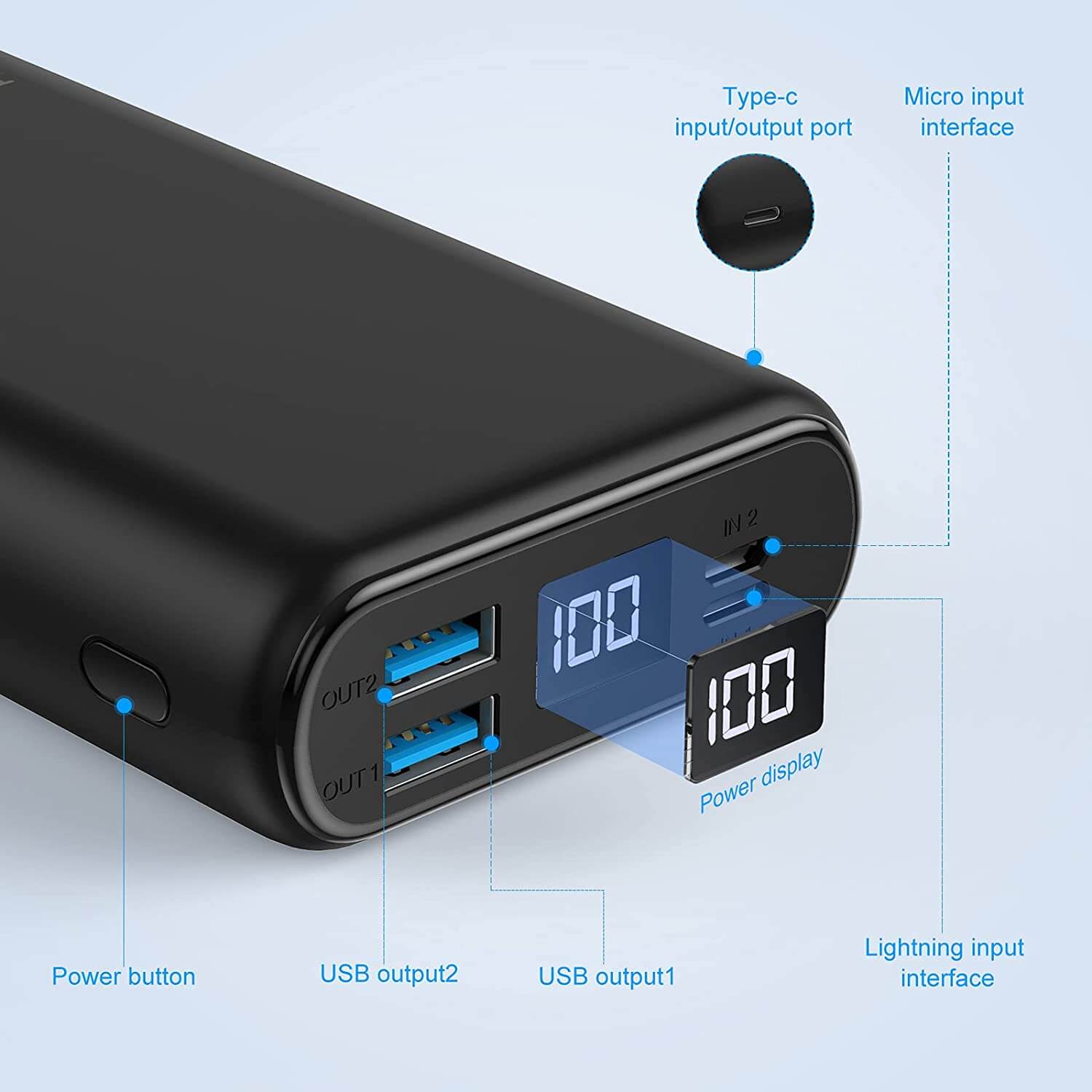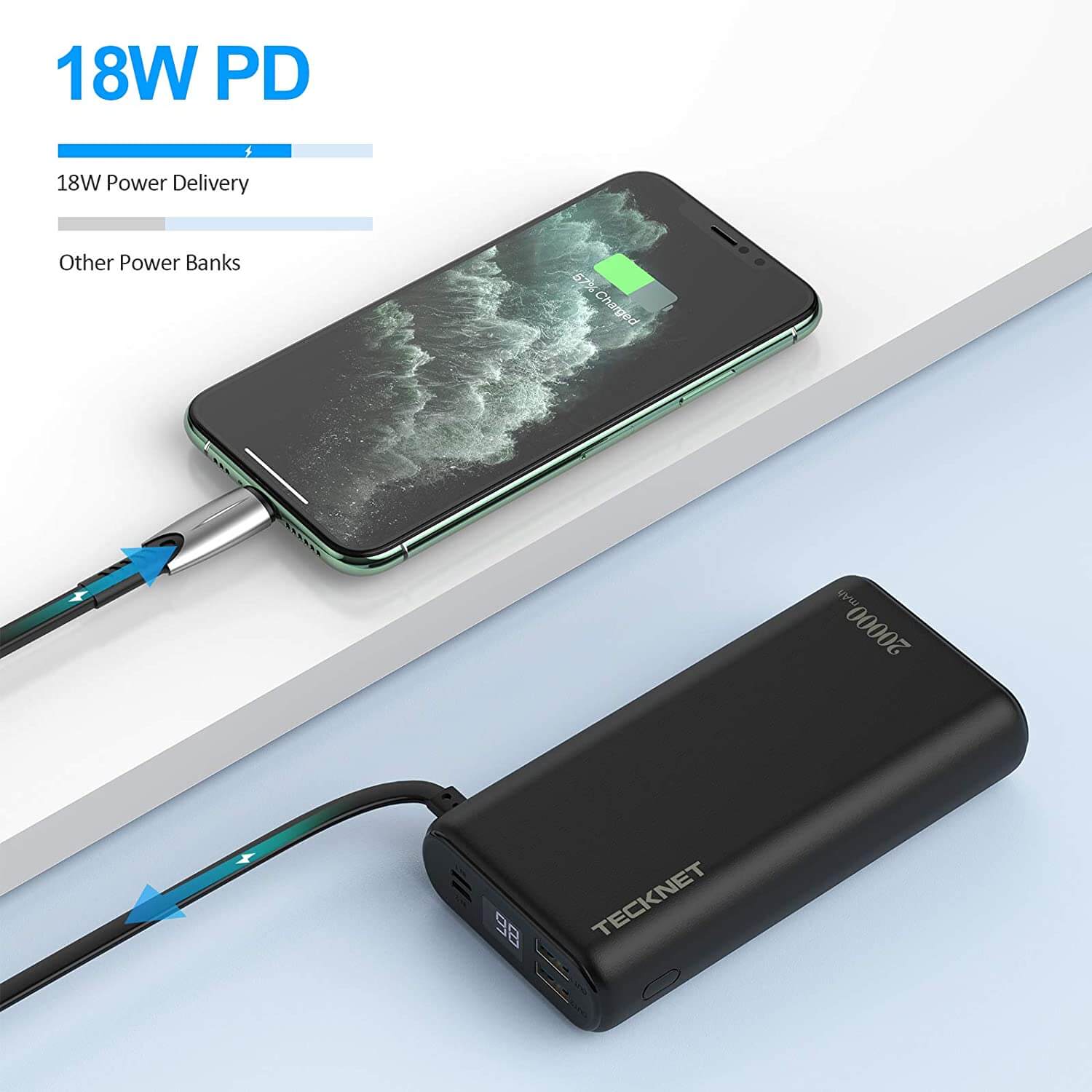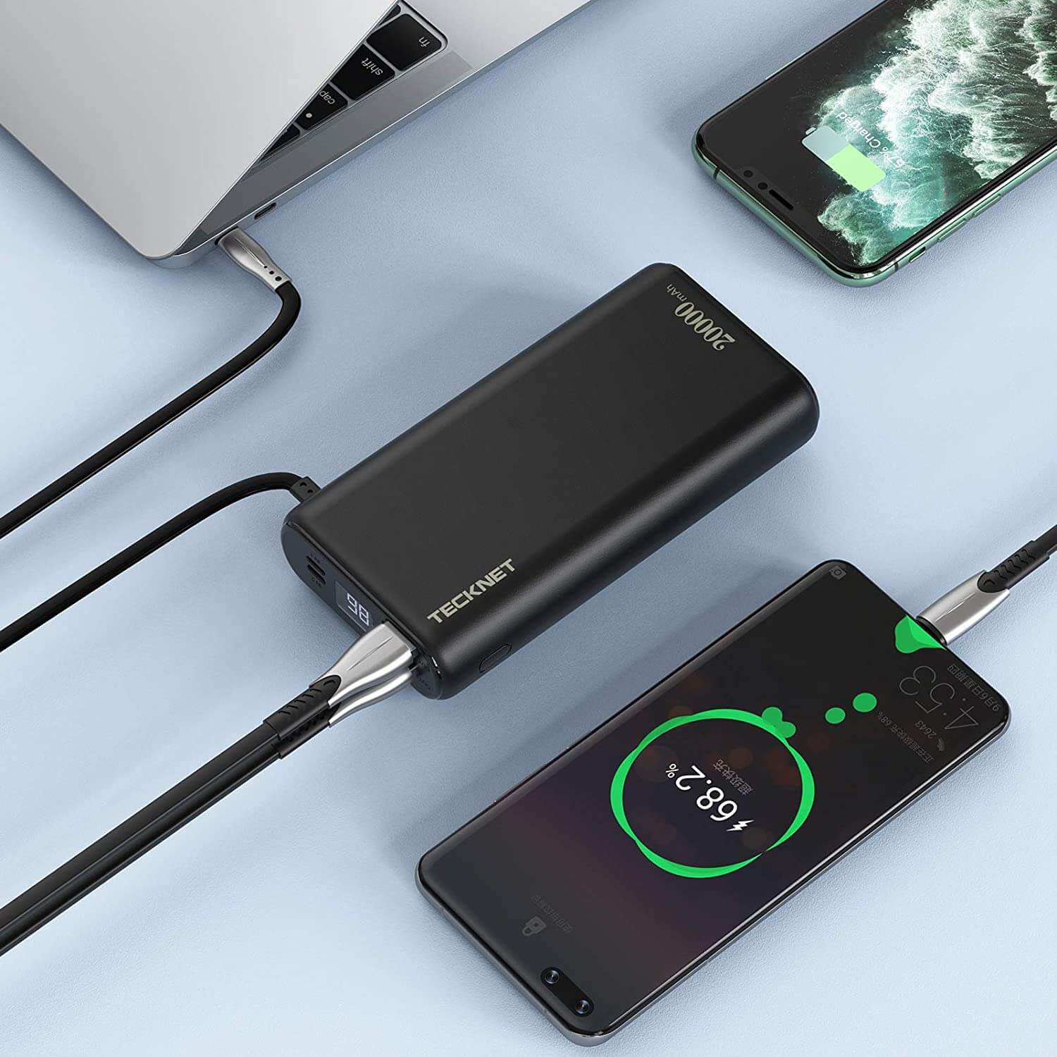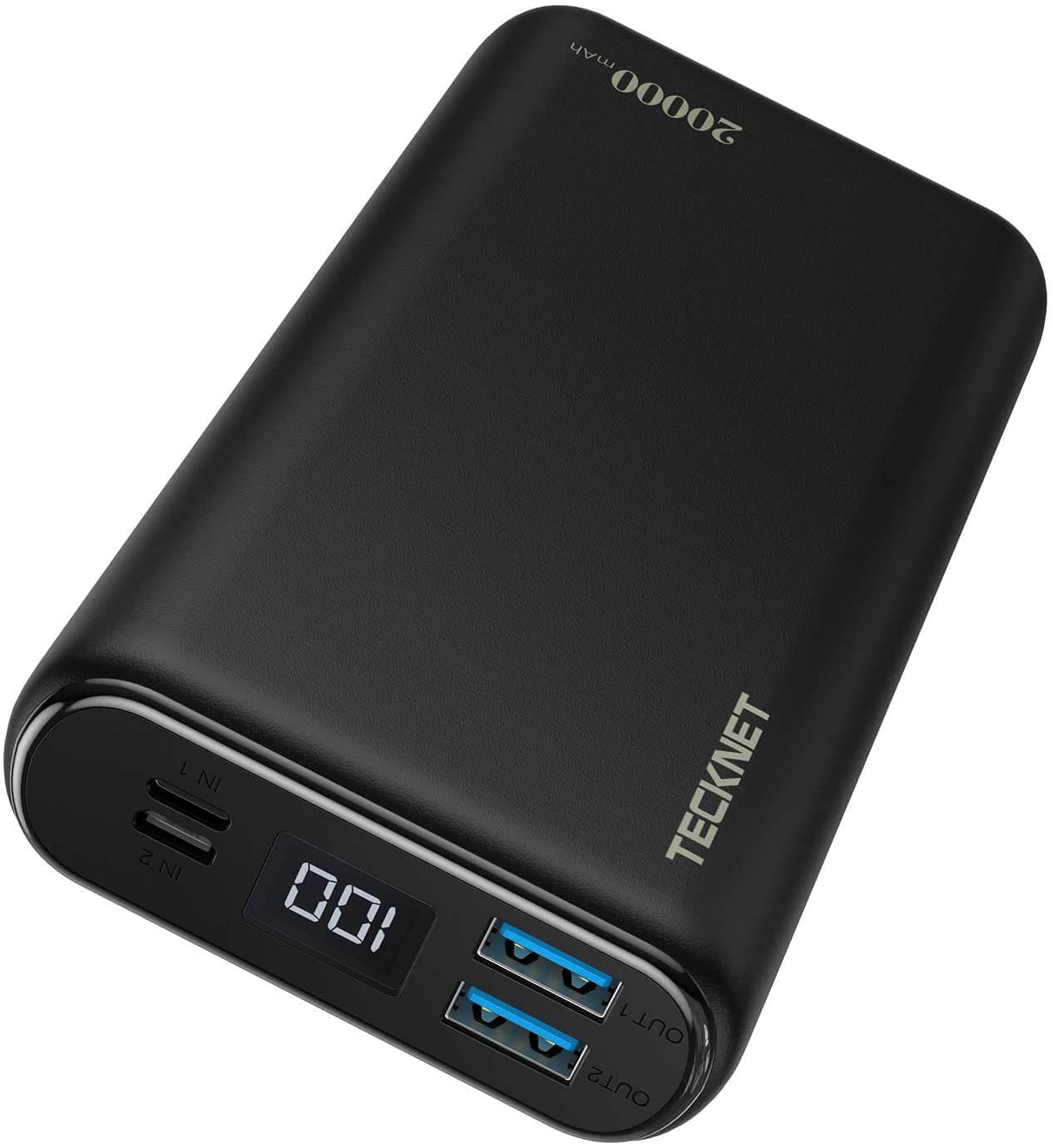 TeckNet EBT01201 18W Power Bank 20000 mAh - външна батерия 20000 mAh с 2xUSB и USB-C изходи за зареждане на смартфони и таблети (черен)
