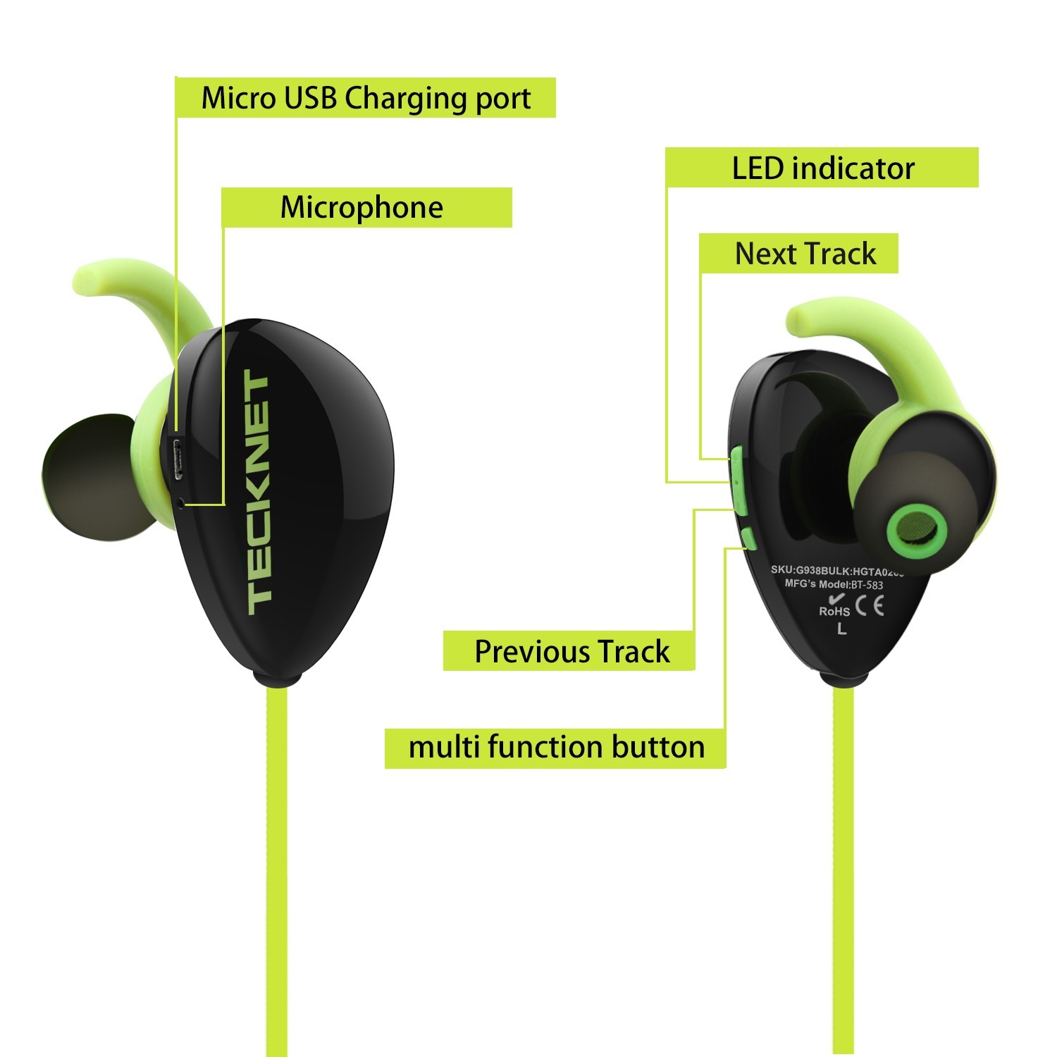 TeckNet G938 Bluetooth 4.0 Sweatproof Sport Earphones - безжични спортни слушалки с микрофон за мобилни устройства (зелен)