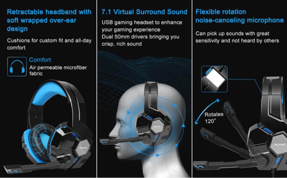 § Винаги си искал да достигнеш по-висок левел в гейминг изживяванията, а слушалките Tecknet GH10928 позволяват точно това, предлагайки surround звук с високо качество