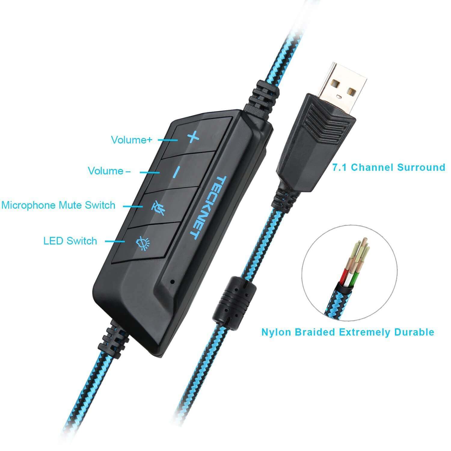 TeckNet GH928 7.1 Channel Surround Sound Gaming Headset - геймърски слушалки с микрофон и управление на звука (черен-син)