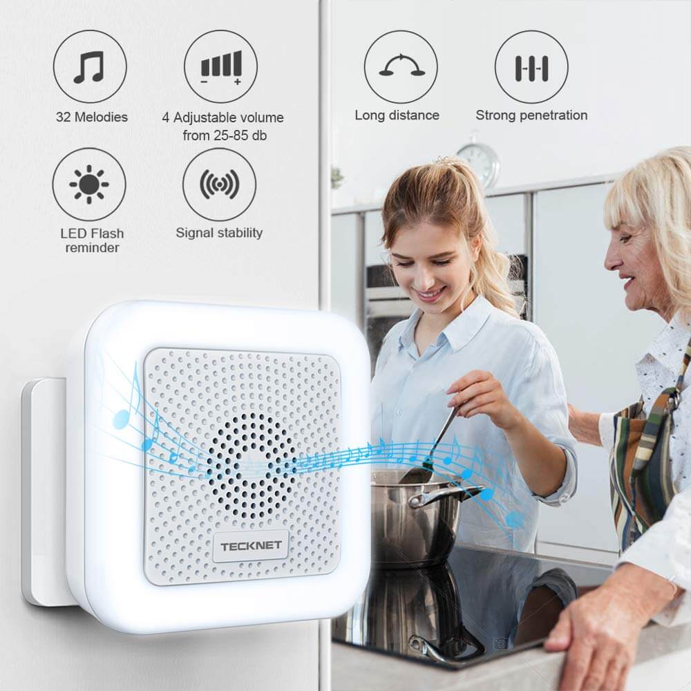 - Стилен безжичен звънец за дома или офиса с 32 различни мелодии, което улеснява замяната на вашия звънец с мелодия на звънене, която по-добре отговаря на индивидуалния ви стил