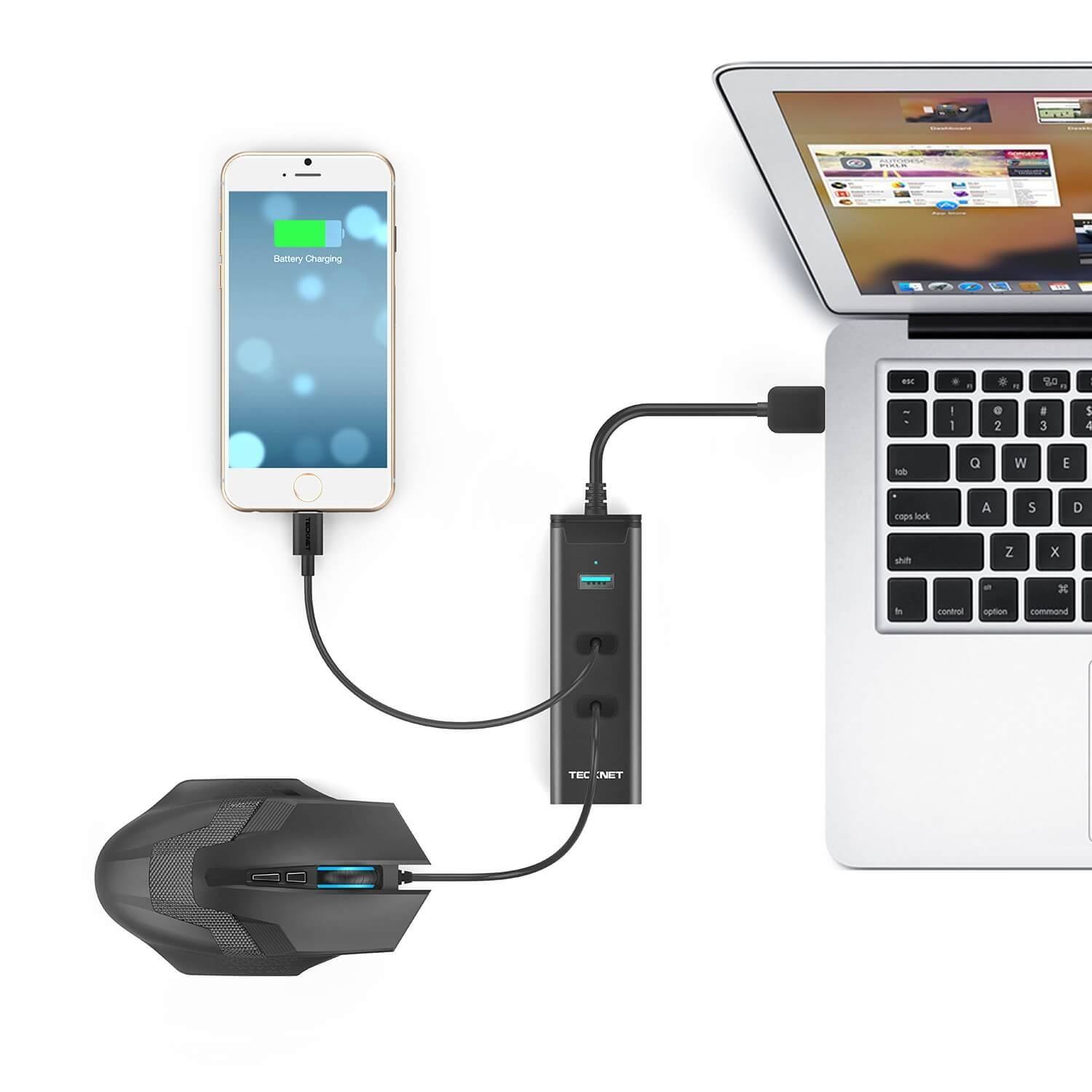 § TeckNet HU04 USB 3.0 HUB е специално проектиран за хора с лаптоп, ултрабук, компютри с USB, като предлага функционалност с разширение с 3 USB порта и един RJ45 Gigabit Ethernet