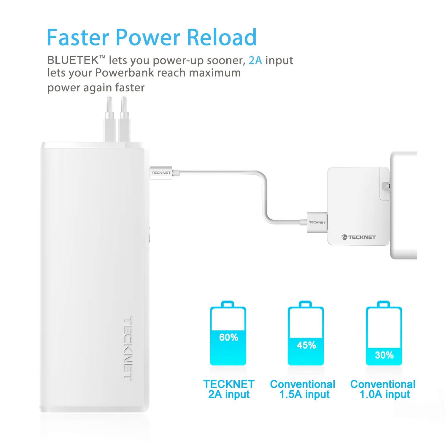 TeckNet iEP1200 PowerWave W2 13000mAh Power Bank - качествена външна батерия 13000mAh с 2xUSB за смартфони и таблети (бял)