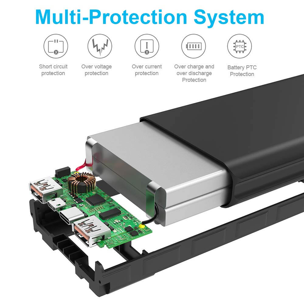 - В компактните размери на батерията (15 x 7.2 x 2 см) е побрана мощна и достатъчна за немалко устройства 20000mAh батерия с над 500 цикъла живот