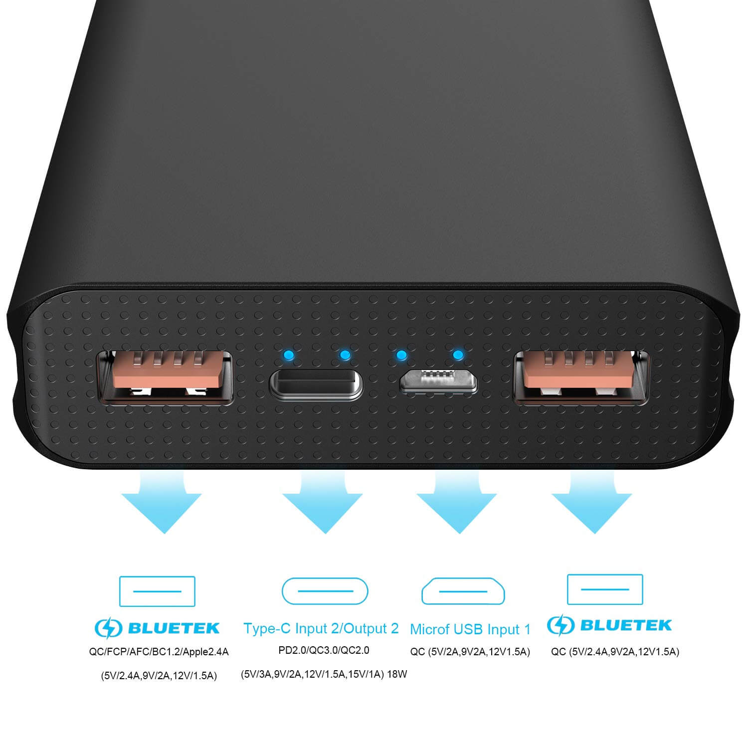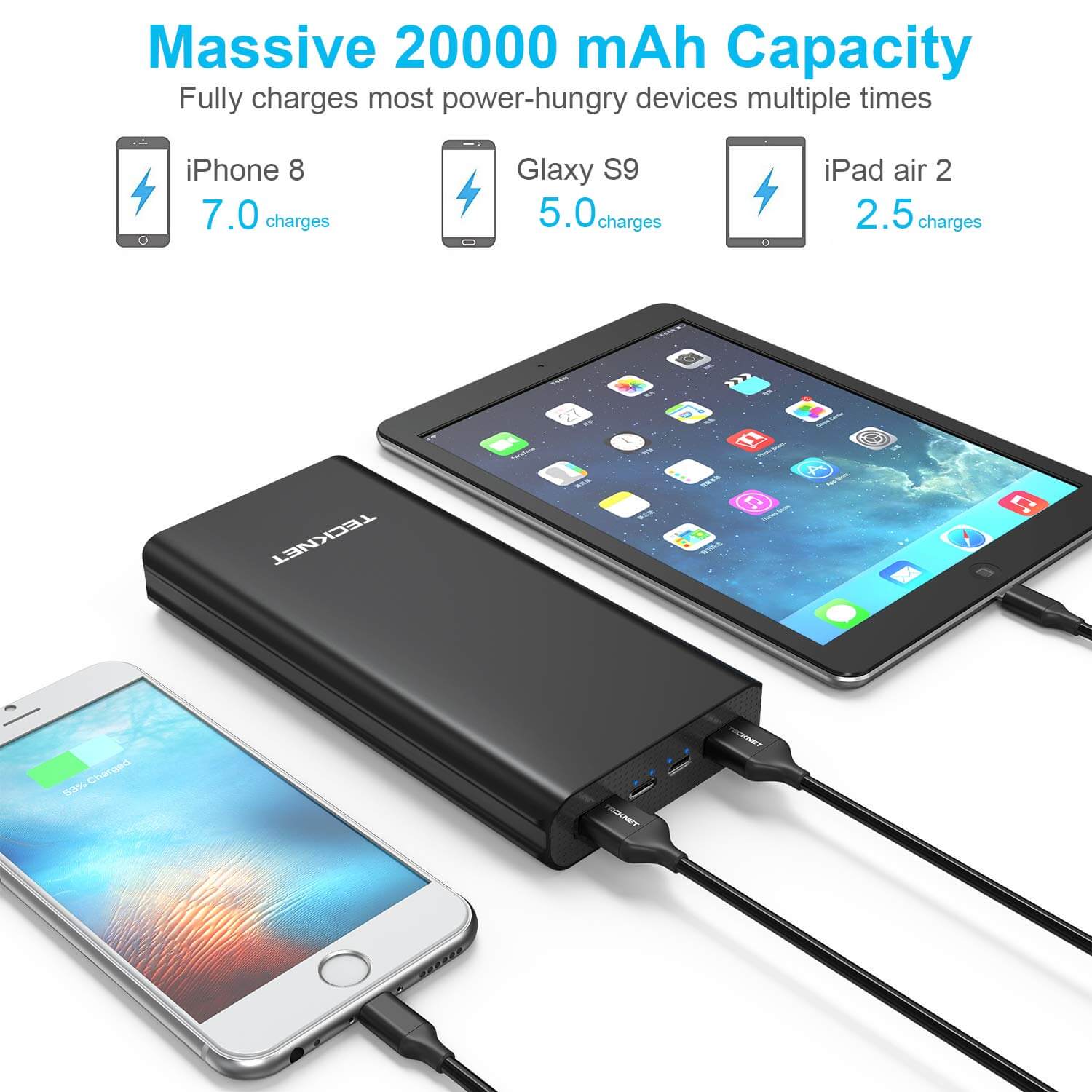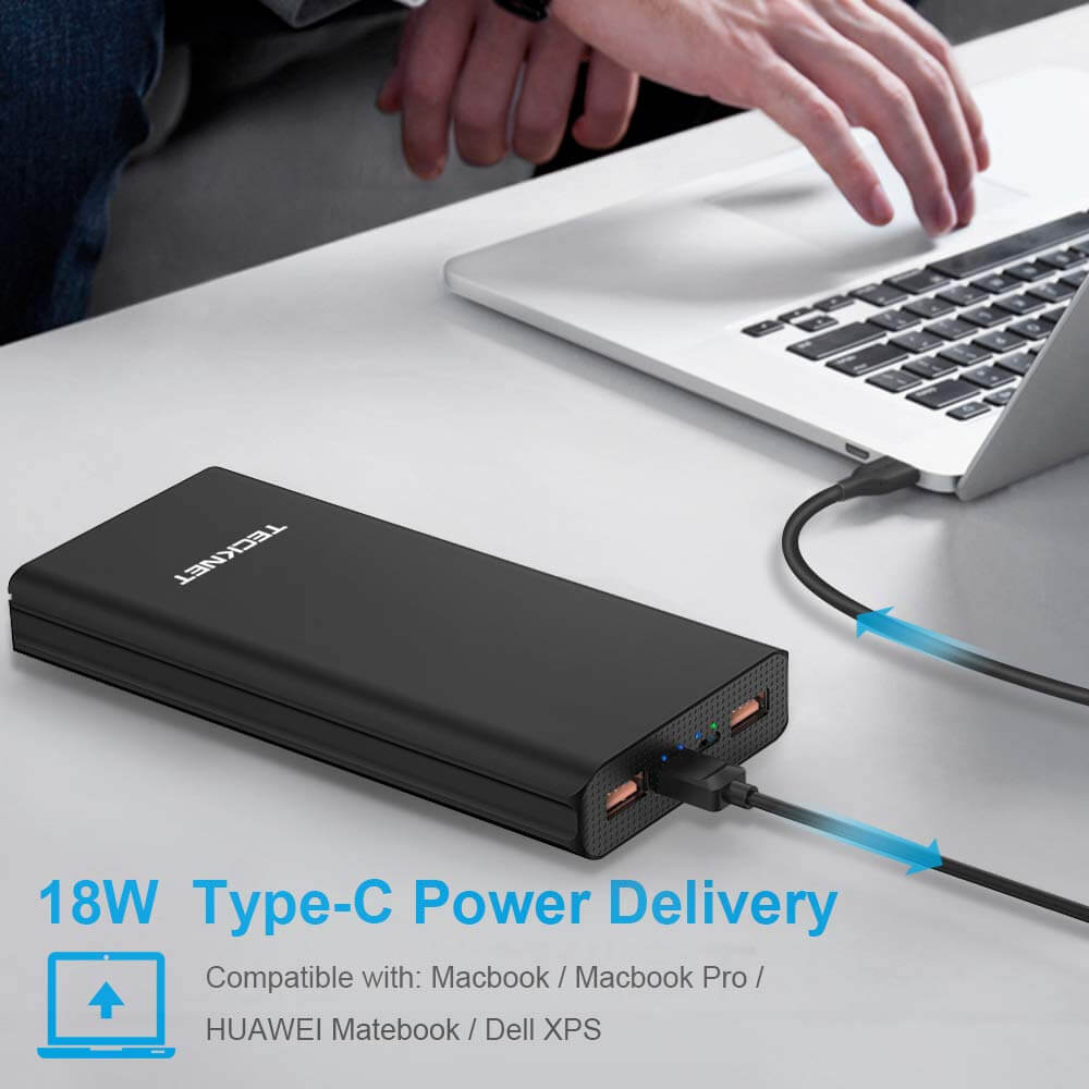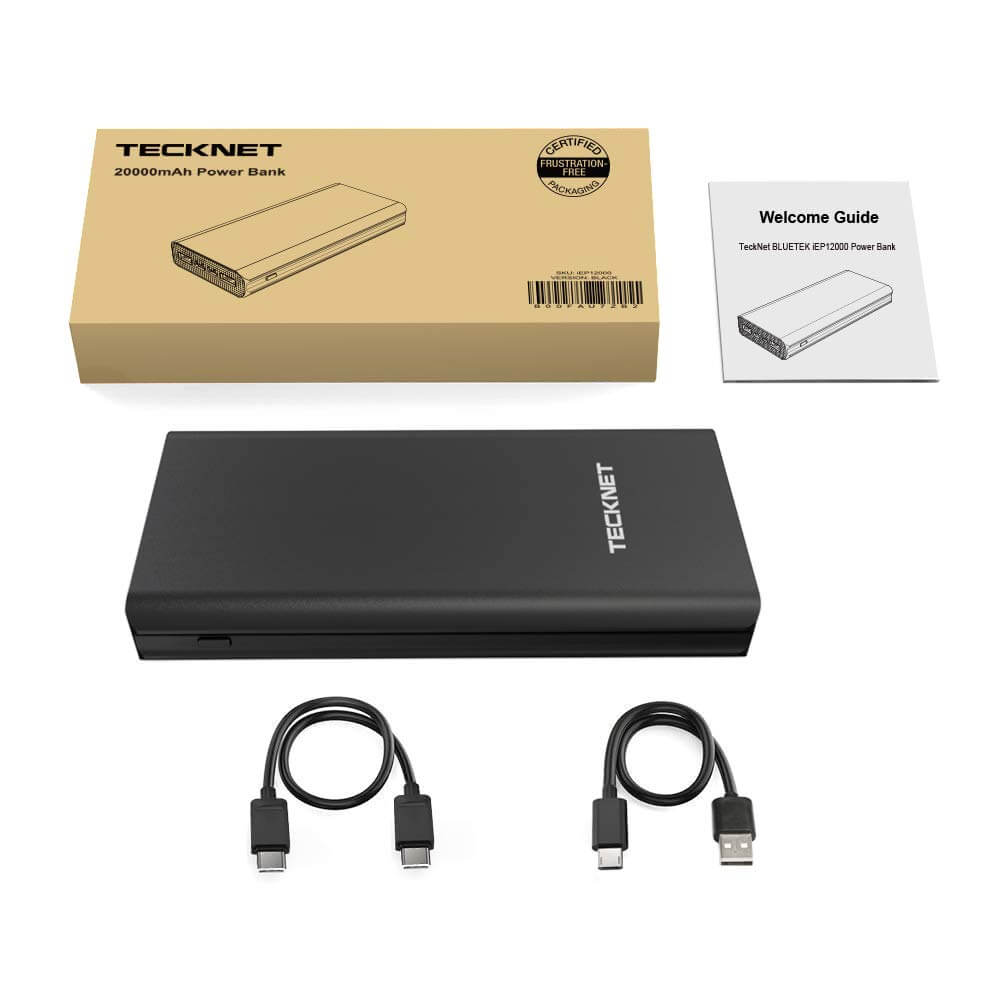 TeckNet iEP12000 20000mAh External Battery Power Bank - качествена външна батерия 20000mAh с USB-A и USB-C портове за зареждане на мобилни устройства (черен)