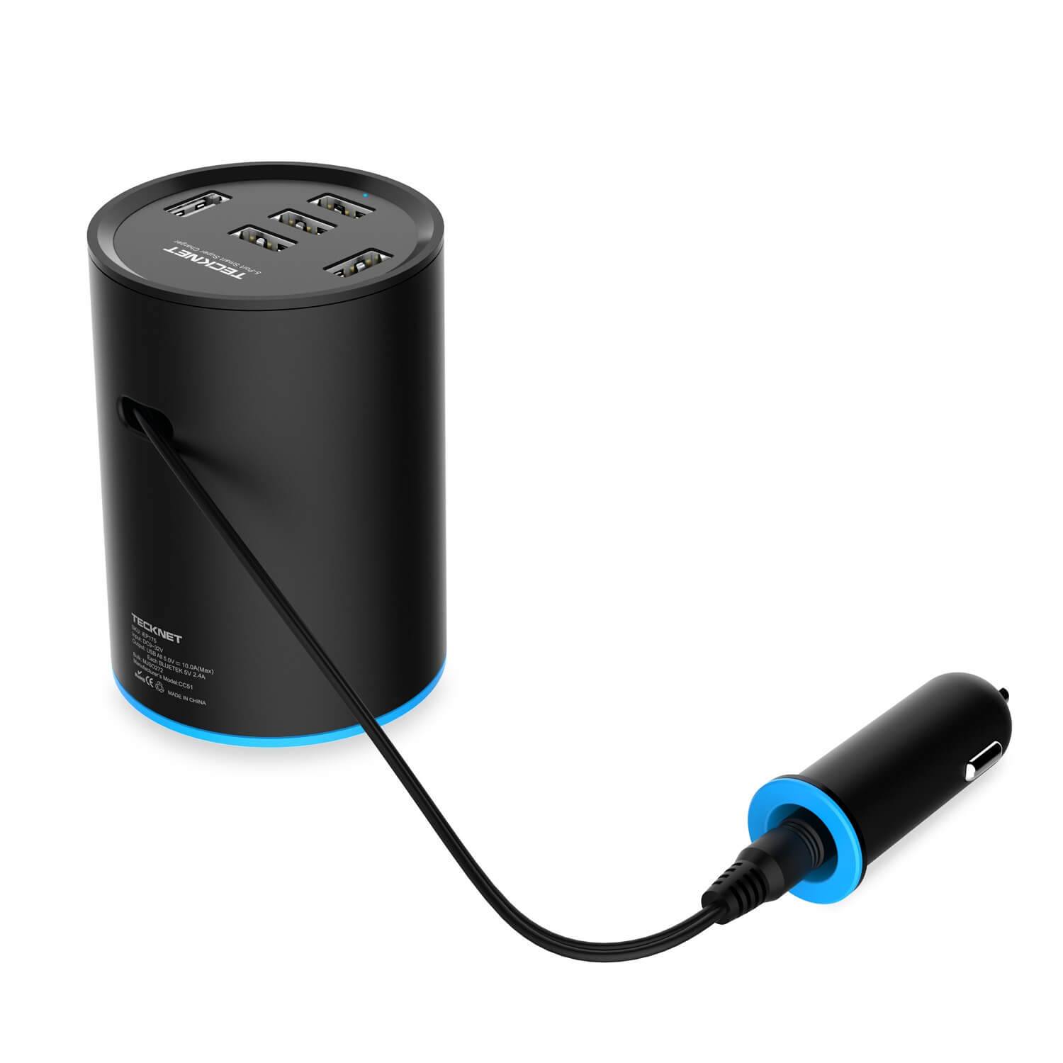 TeckNet iEP175 USB Car Charger 12A/60W - зарядно за кола (12A/60) с 5xUSB порта за мобилни устройства (черен)