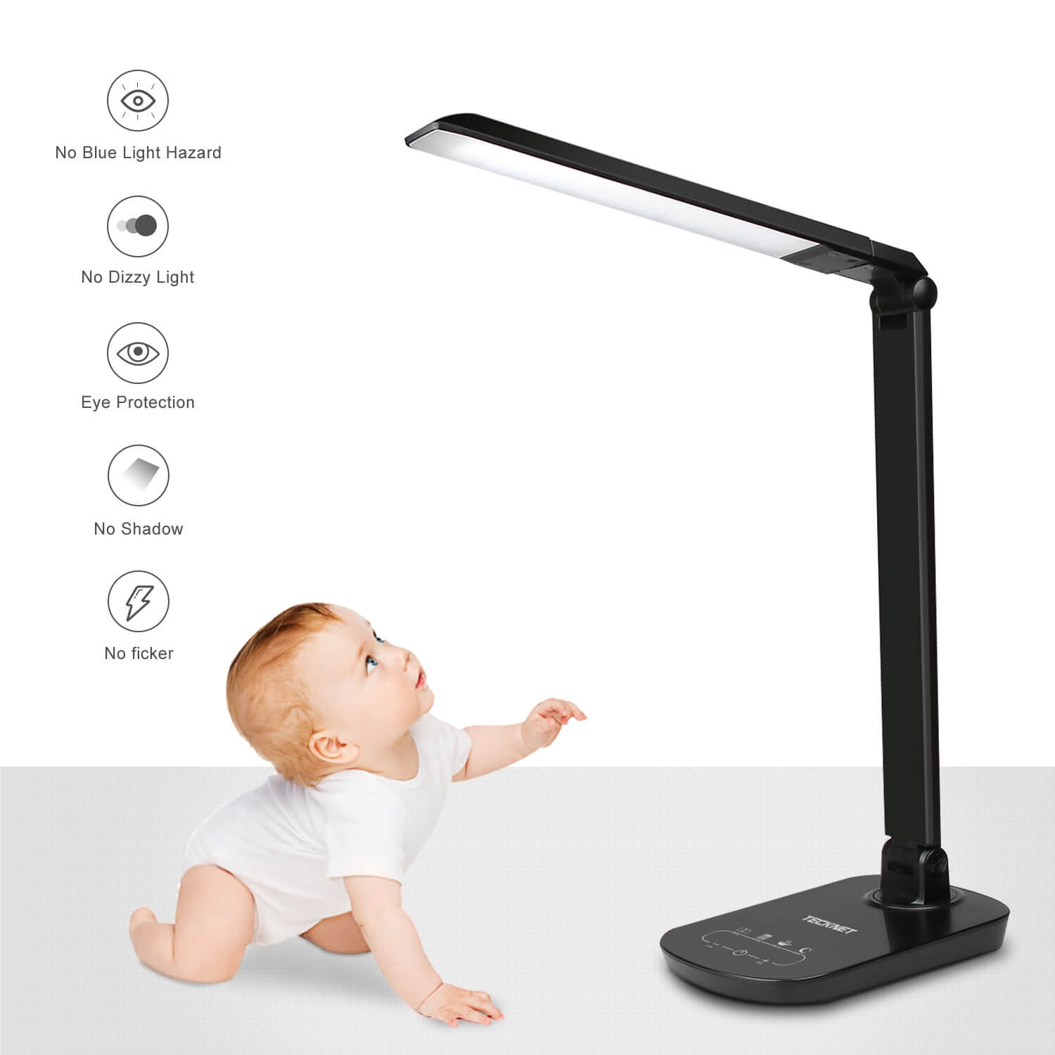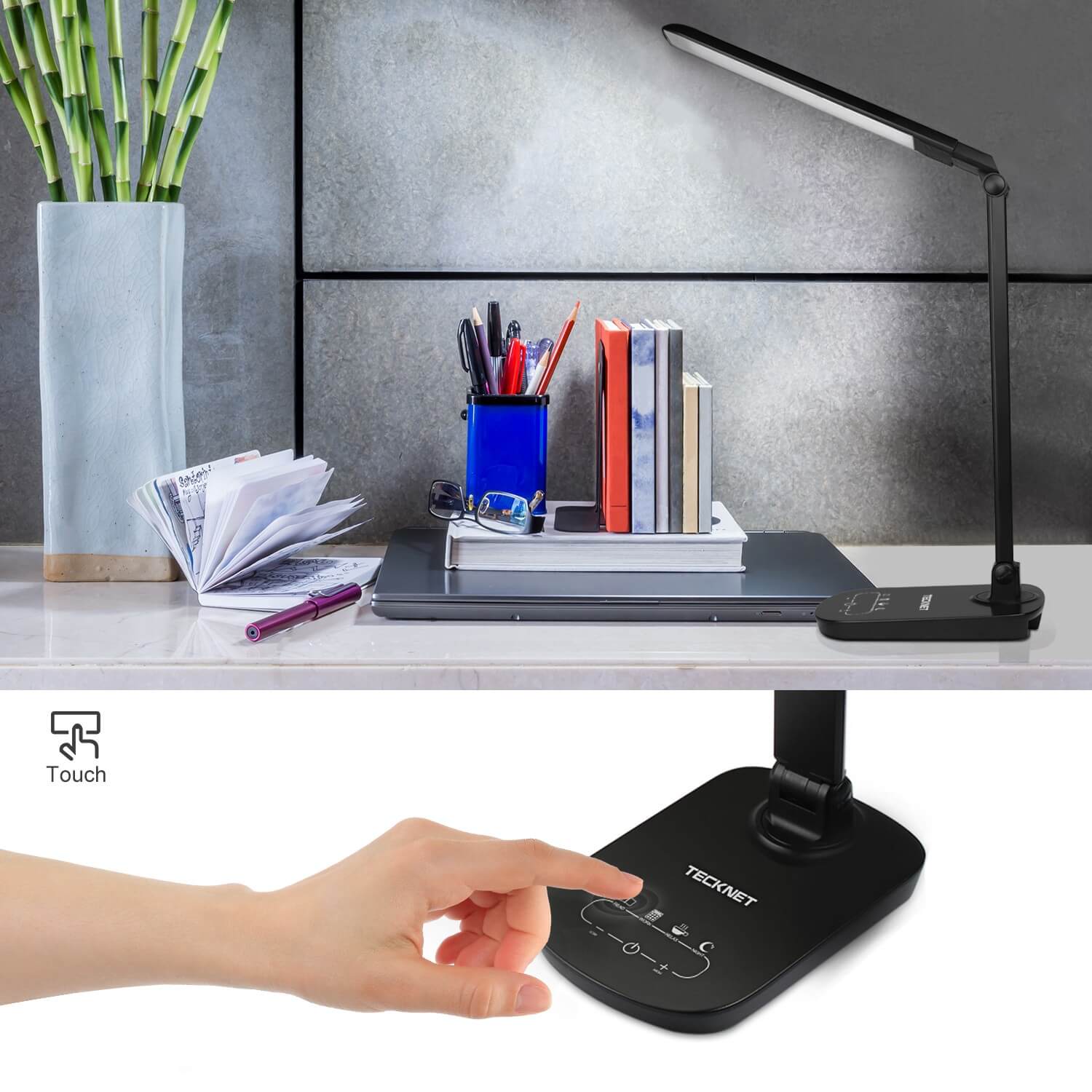 TeckNet LED12 15W EyeCare Dimmable LED Desk Lighting With Touch Control - настолна LED лампа със защита за очите, USB порт и нагласяща се основа
