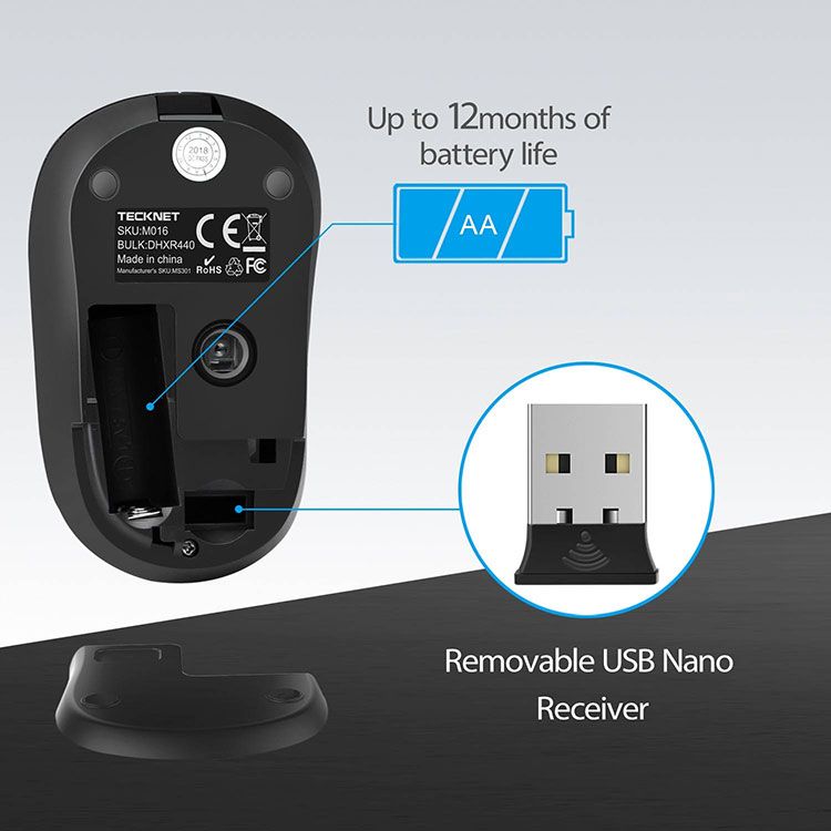 § TeckNet M016 е удобна за използване и от двете ръце безжична мишка