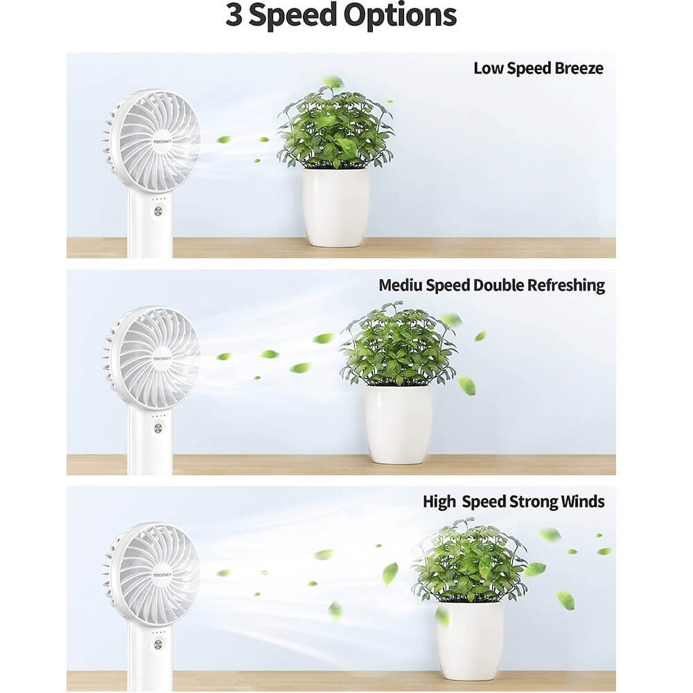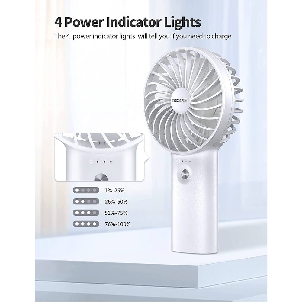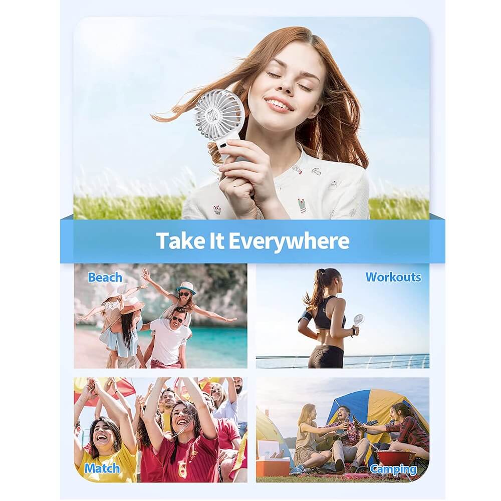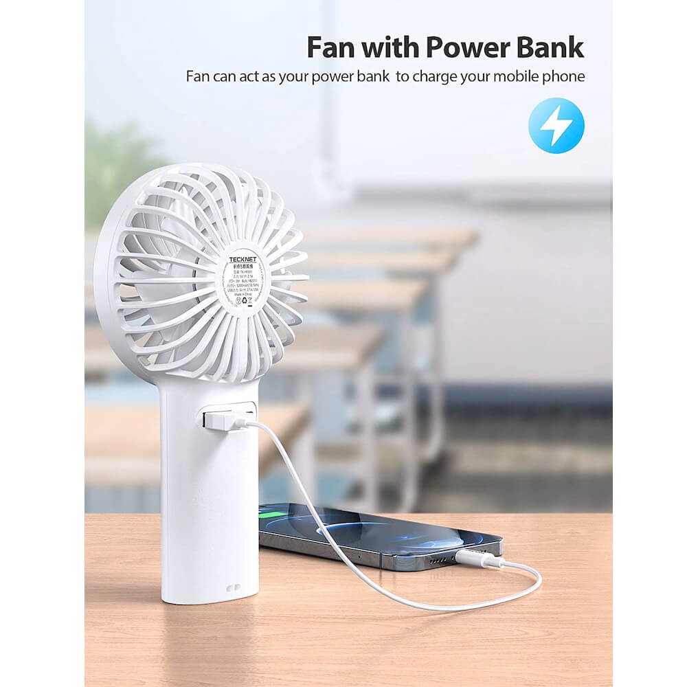 - Малък и леснопреносим вентилатор с голяма презареждаема батерия, който може да се използва и като външна батерия