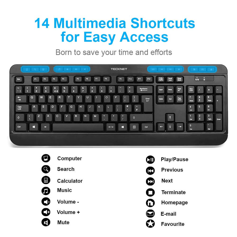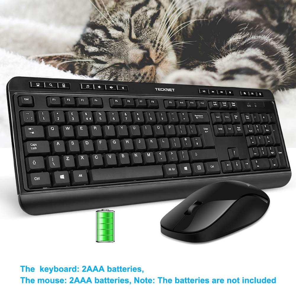 Tecknet Office Slim X300 V3 2.4G - комплект устойчива на течности клавиатура и безжична мишка за офиса (черен)