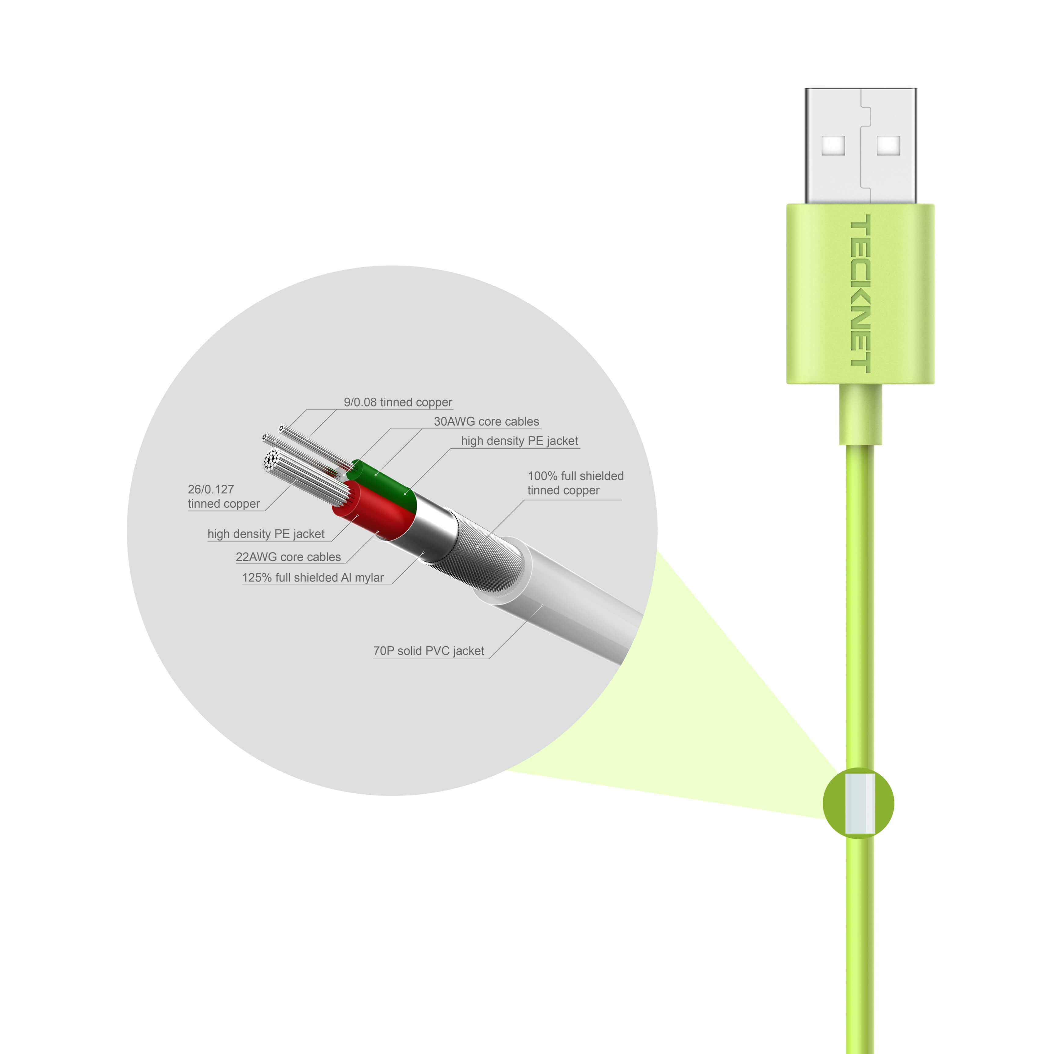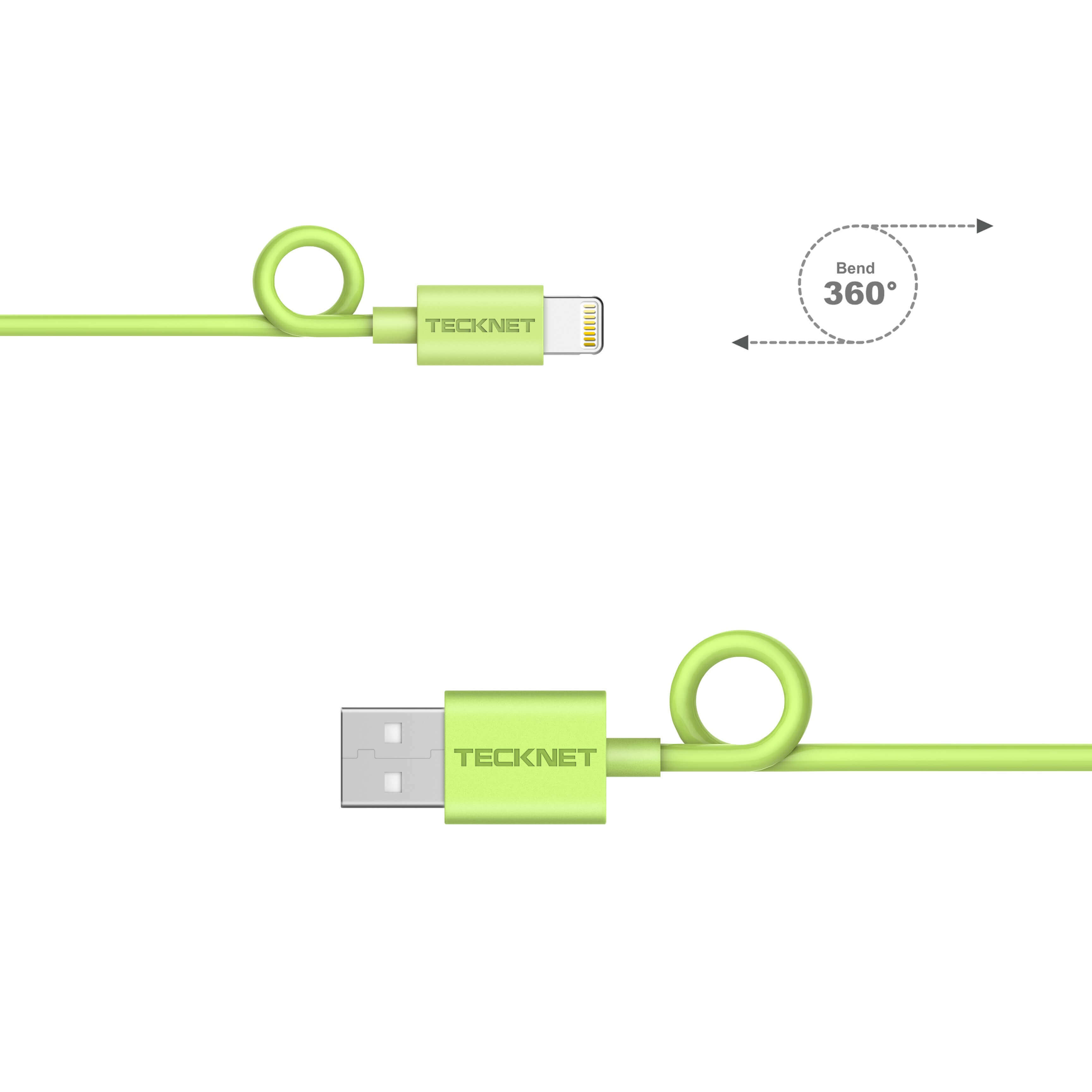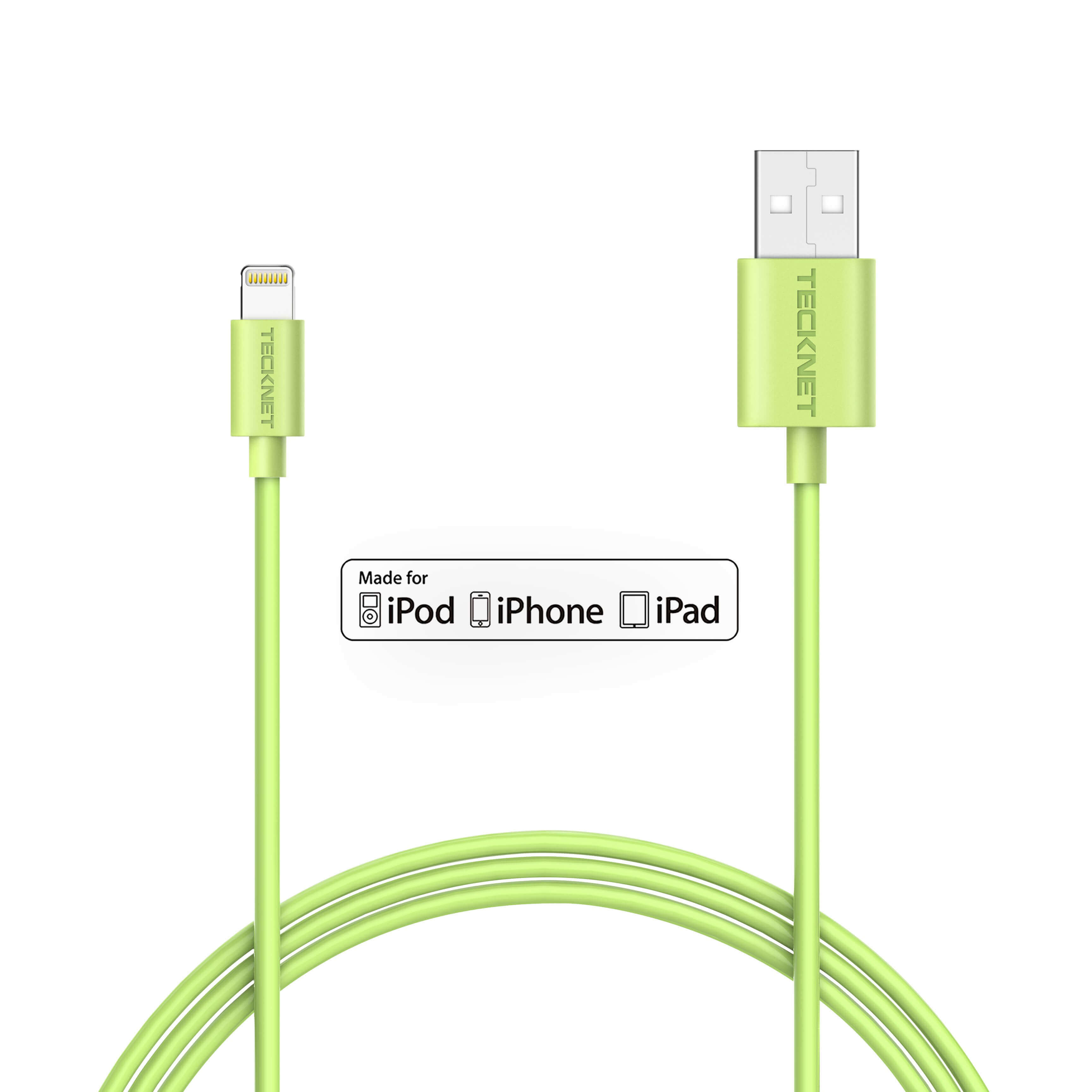 TeckNet P101 Apple MFi Certified Lightning to USB Cable 1m. - изключително здрав и качествен Lightning кабел за iPhone, iPad, iPod с Lightning (1 метър) (зелен)